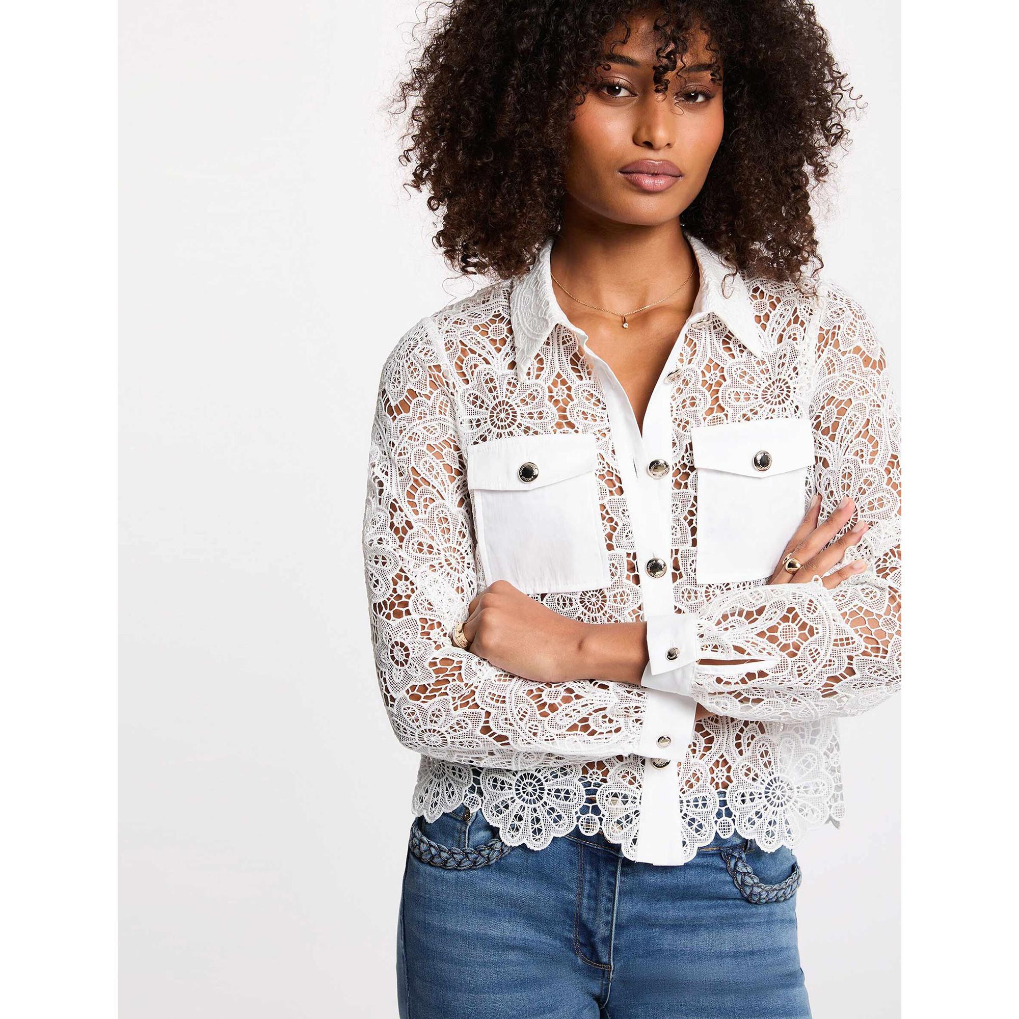 Dieses Langarmhemd aus Spitze von Morgan ist das perfekte Kleidungsstück, um Ihrem Outfit einen Hauch von Eleganz zu verleihen. Ideal für besondere Anlässe und stilvolle Auftritte.