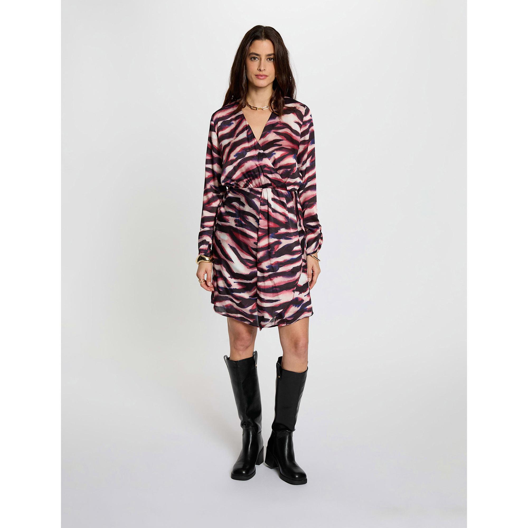 Dieses kurze Kleid präsentiert sich mit einem auffälligen Zebra-Print und sorgt für einen modernen und modischen Look. Das Design umfasst einen V-Ausschnitt und lange Ärmel. Der elastische Bund sorgt für eine bequeme Passform und eine schmeichelhafte Silhouette.
