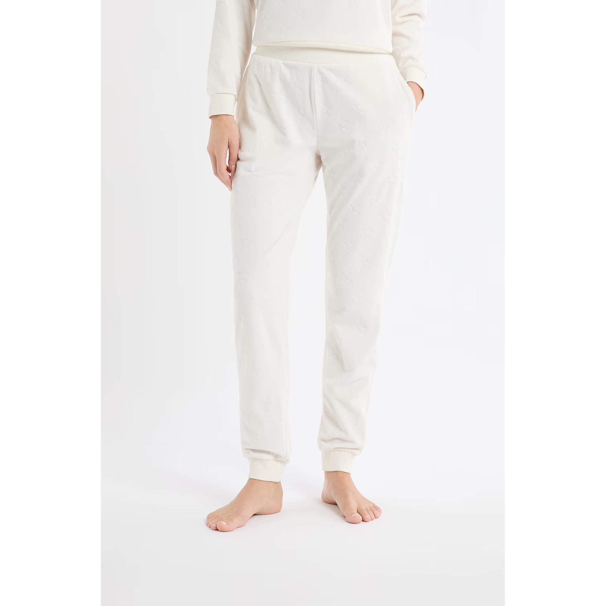 Diese Pyjamahose bietet Komfort und Stil für entspannte Stunden zu Hause. Das Design verfügt über ein durchgehendes Sternenmuster, das der Loungewear eine verspielte Note verleiht. Der elastische Bund sorgt für eine bequeme Passform, während die gerippten Bündchen an den Knöcheln einen angenehmen Sitz bieten.