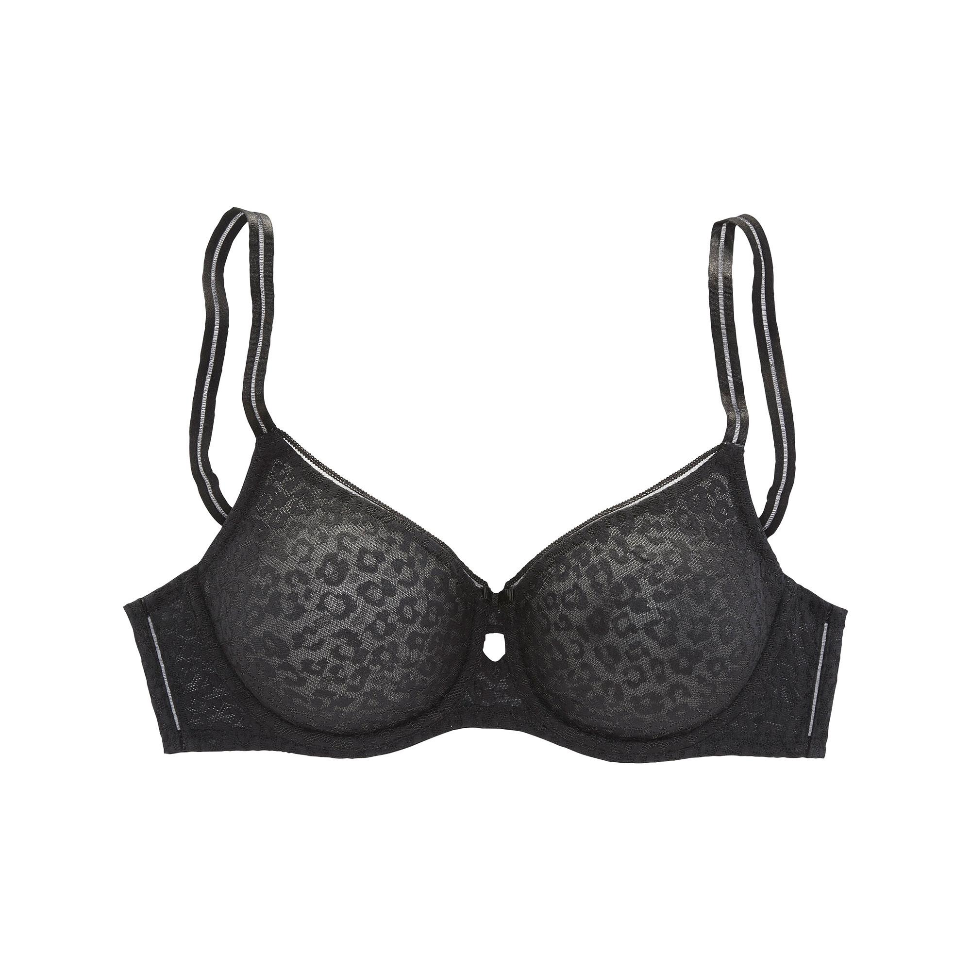 Dieser gepolsterte Bügel-BH bietet sowohl Halt als auch Komfort. Das Design weist ein dezentes Animal-Print-Muster auf den Cups auf, das einen Hauch von Eleganz verleiht. Die verstellbaren Träger sorgen für eine individuelle Passform und machen ihn alltagstauglich.