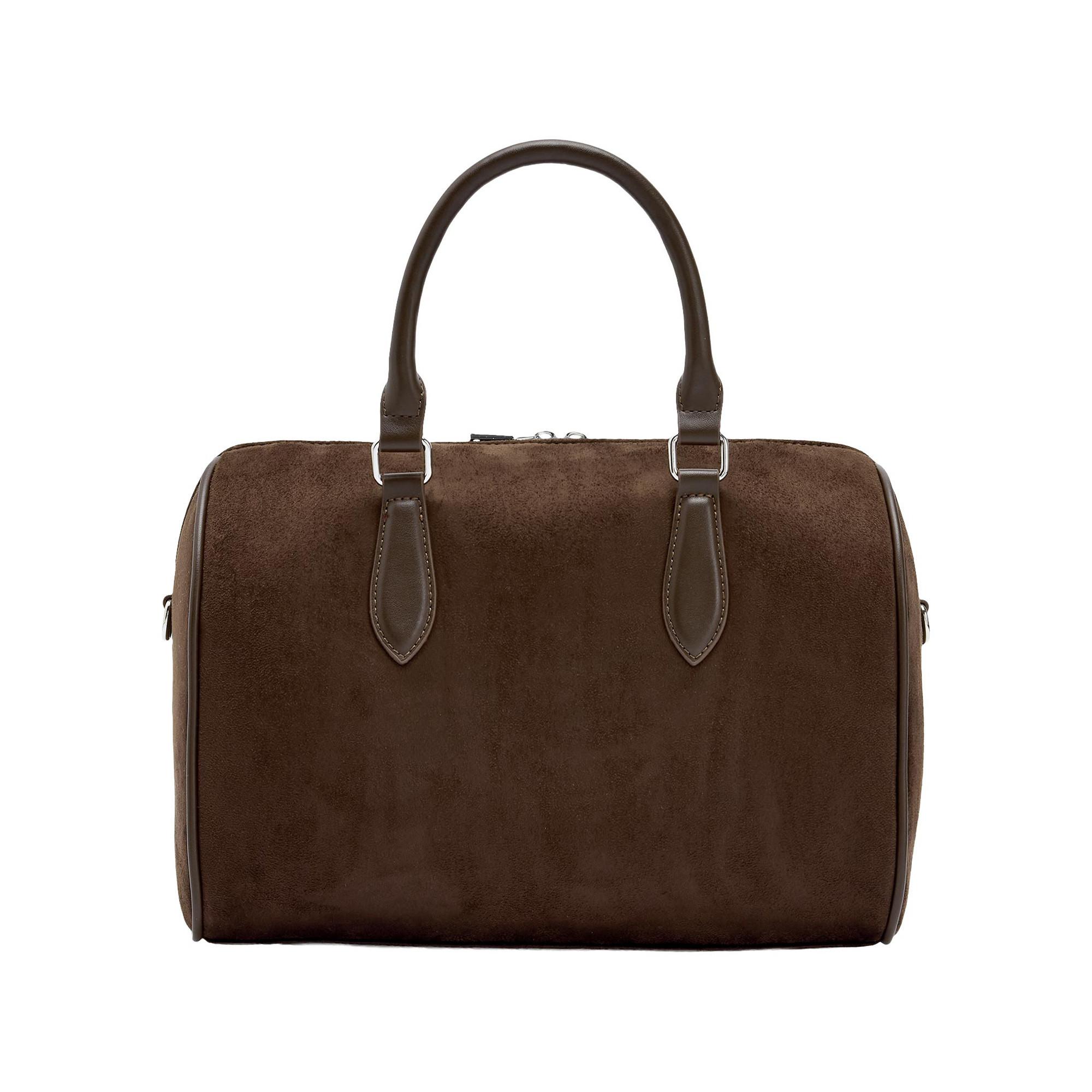Diese Handtasche präsentiert sich in einer raffinierten Wildleder-Optik, die jedem Outfit einen Hauch von Eleganz verleiht. Das Design umfasst einen sicheren Reissverschluss, um persönliche Gegenstände sicher aufzubewahren, sowie einen verstellbaren Schulterriemen für vielseitige Tragemöglichkeiten.