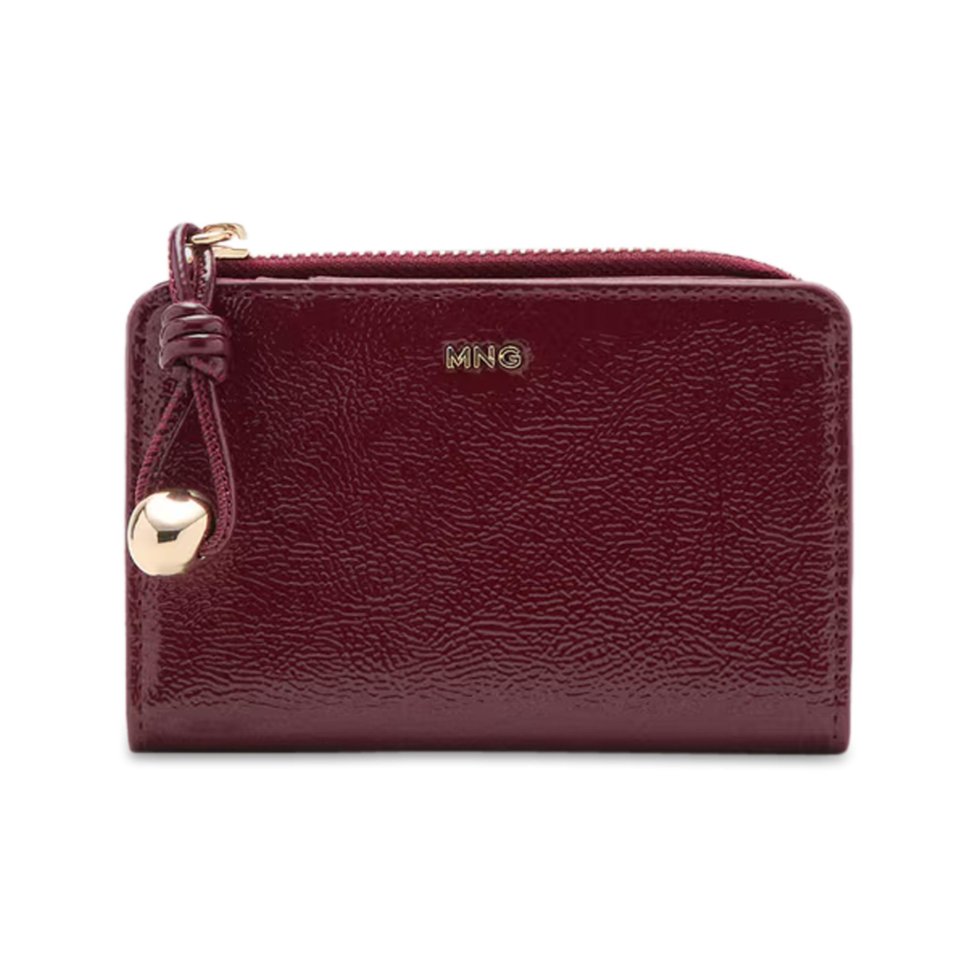 Dieses kompakte Portemonnaie besticht durch ein schlankes Design mit glänzender Oberfläche und dem prominent auf der Vorderseite platzierten Logo. Es verfügt über mehrere Kartenfächer und ein Reissverschlussfach für Münzen, was es zu einem praktischen Accessoire für den täglichen Gebrauch macht. Das Portemonnaie wird mit einem Druckknopfverschluss und einem oberen Reissverschluss gesichert und ist mit einem dekorativen Zugband für zusätzlichen Stil ausgestattet.
