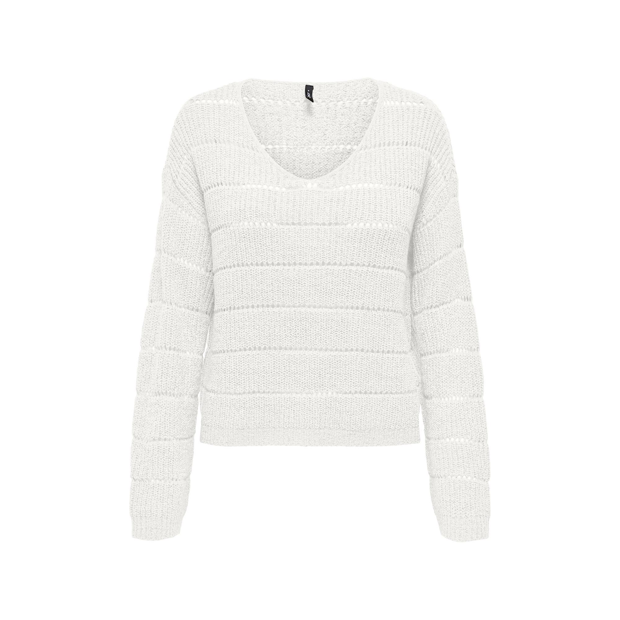 Dieser Strickpullover zeichnet sich durch eine entspannte Passform und einen U-Boot-Ausschnitt aus, was ihn zu einer bequemen und stilvollen Option für verschiedene Anlässe macht. Das Design umfasst ein markantes Lochmuster, das dem Kleidungsstück eine besondere Textur und visuelles Interesse verleiht.