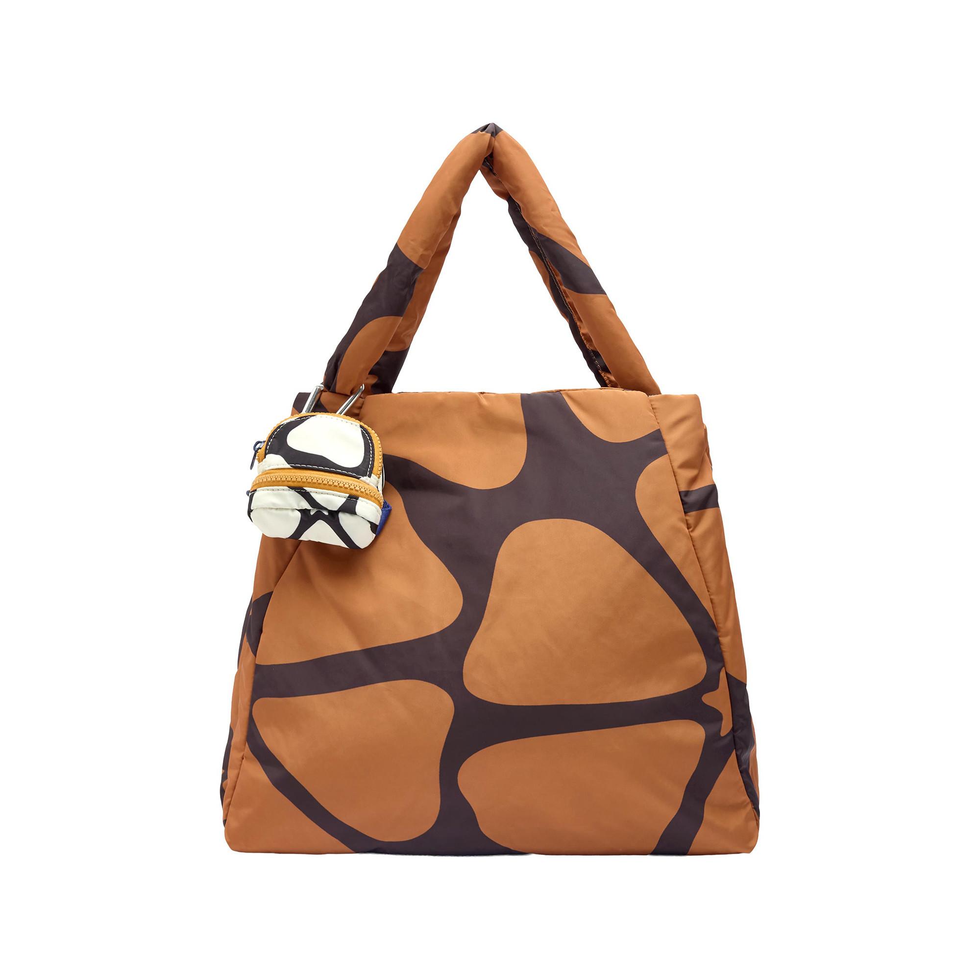 Diese Shopper-Tasche zeichnet sich durch ein markantes Muster und ein geräumiges Design aus, was sie zu einem praktischen Accessoire für den täglichen Gebrauch macht. Die Tasche enthält eine kleine, abnehmbare Tasche, die Vielseitigkeit und zusätzlichen Stauraum für kleinere Gegenstände bietet.