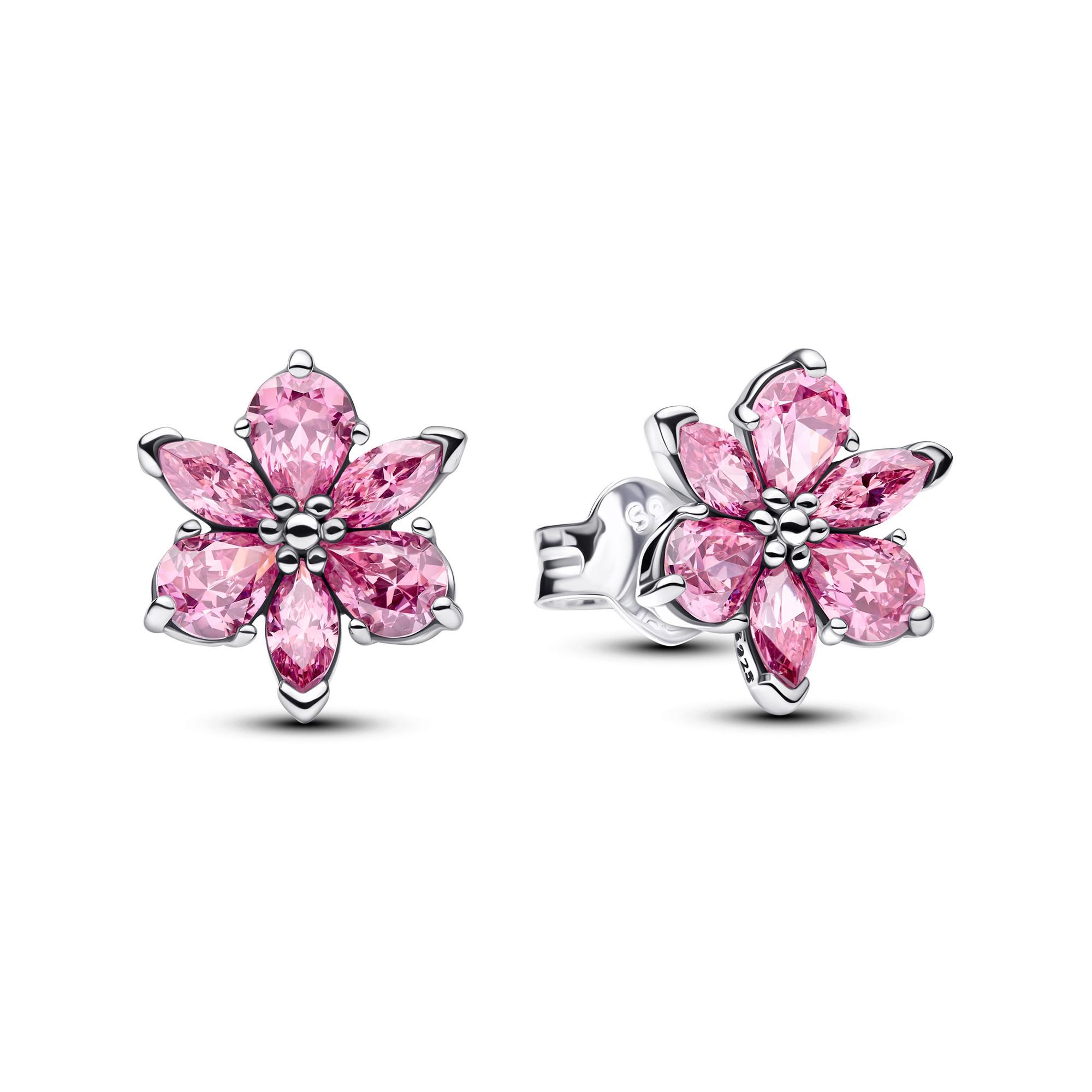Die Sterling-Silber-Ohrstecker bestechen durch rosafarbene Steine im Birnen- und Marquiseschliff, die sich zu eleganten, geschwungenen Blütenblättern formen. Ein funkelndes Schmuckstück, das deine Liebe zur Natur stilvoll unterstreicht.