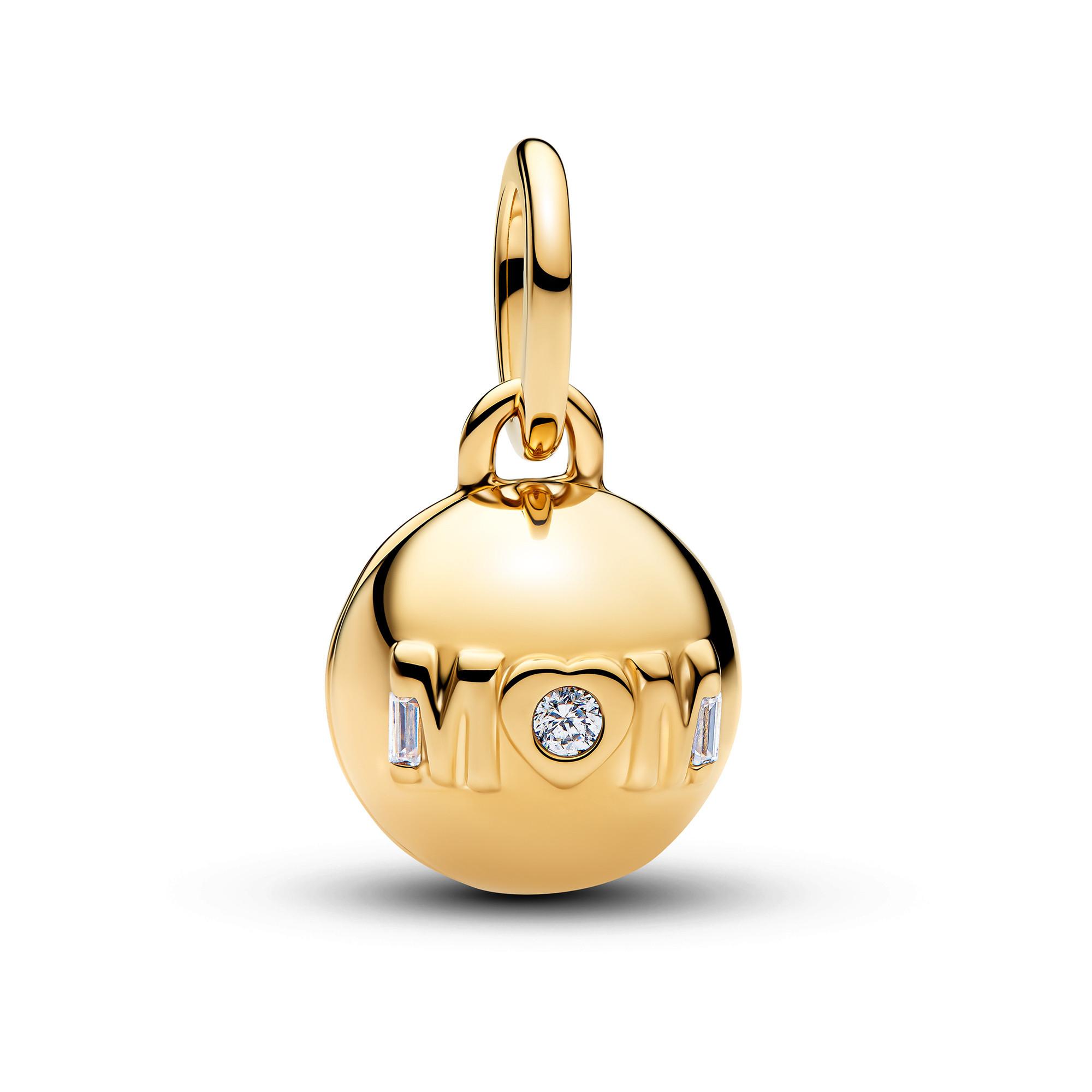 Der zu öffnende Kugel-Charm aus 14 Karat vergoldetem Material beeindruckt mit erhabenen Schriftzügen, drei funkelnden Steinen und der Gravur „Love you“ in schwarzer Emaille im Inneren. Ein liebevolles Schmuckstück, das deiner Mutter auf besondere Weise deine Wertschätzung zeigt.