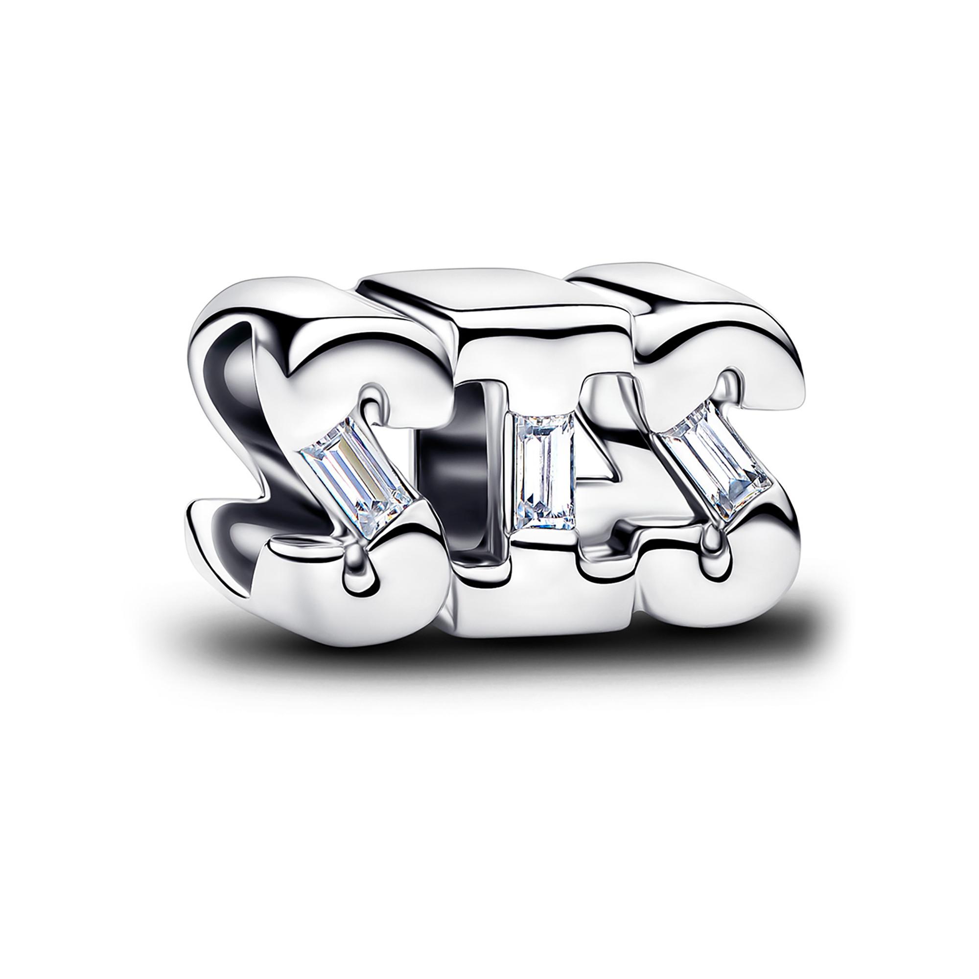 Das auffällige Wort-Charm aus Sterling-Silber feiert die Schwesterlichkeit, jeder Buchstabe ist mit funkelndem, klarem Cubic Zirkonia verziert. Ein funkelndes Schmuckstück, das eure besondere Verbindung stilvoll zum Ausdruck bringt.