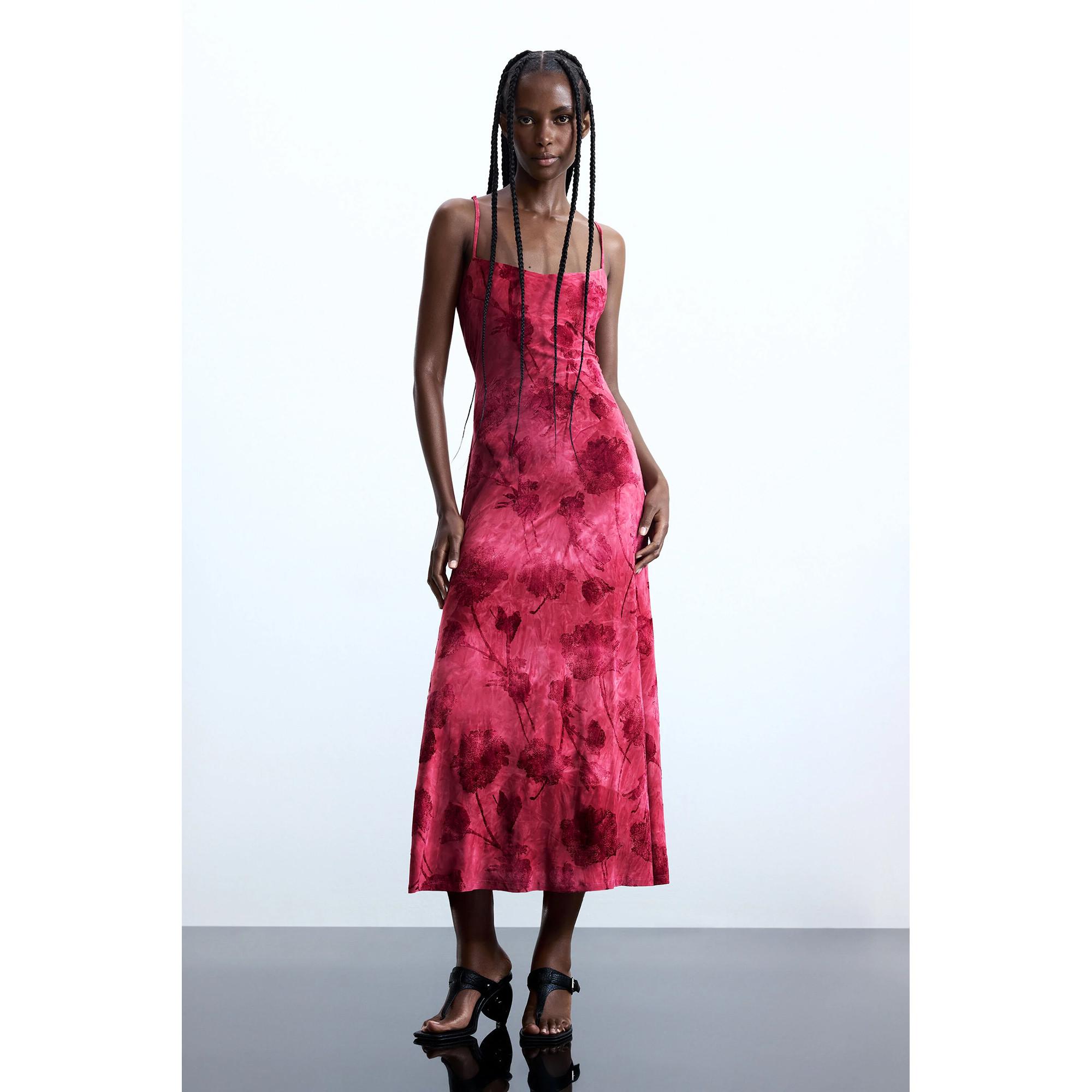 Dieses ärmellose Midikleid präsentiert ein zartes Blumenmuster und sorgt für einen raffinierten und eleganten Look. Das Design umfasst dünne Träger und eine schmeichelhafte Silhouette, die bis zur Midi-Länge reicht.