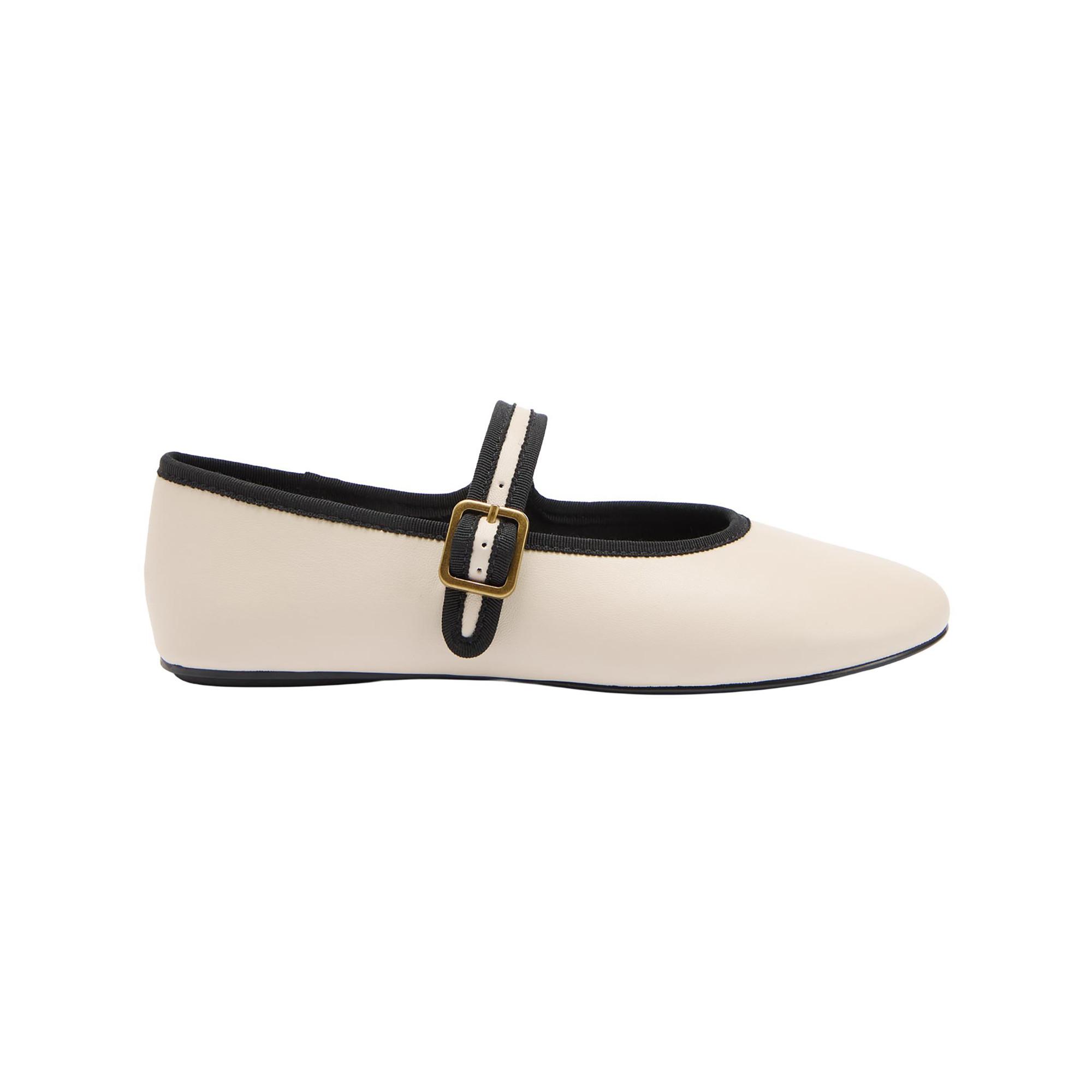 Diese Ballerinas zeichnen sich durch ein klassisches Design mit einem modernen Touch aus, was sie zu einer vielseitigen Ergänzung für jede Garderobe macht. Die elegante Silhouette wird durch einen dekorativen Schnallenriemen über dem Spann ergänzt, der sowohl Stil als auch einen sicheren Halt bietet. Die kontrastierende Zierleiste entlang der Öffnung verleiht dem Gesamtbild ein raffiniertes Detail.