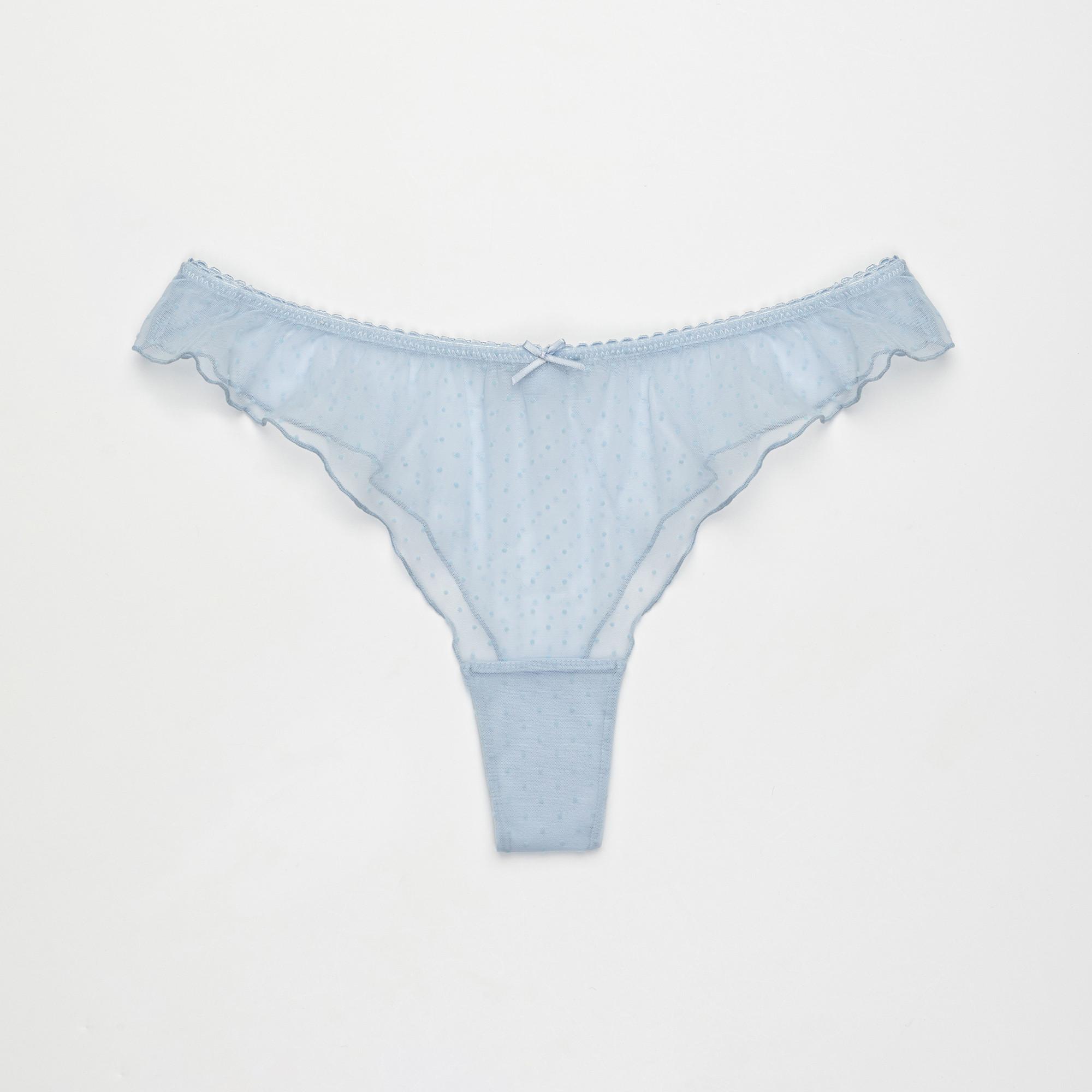 Dieser Tanga präsentiert sich mit einem verspielten Herzmuster und zarten Rüschendetails, die jede Dessous-Kollektion charmant und bequem ergänzen. Das Design verbindet eine romantische Ästhetik mit einer modernen Silhouette.