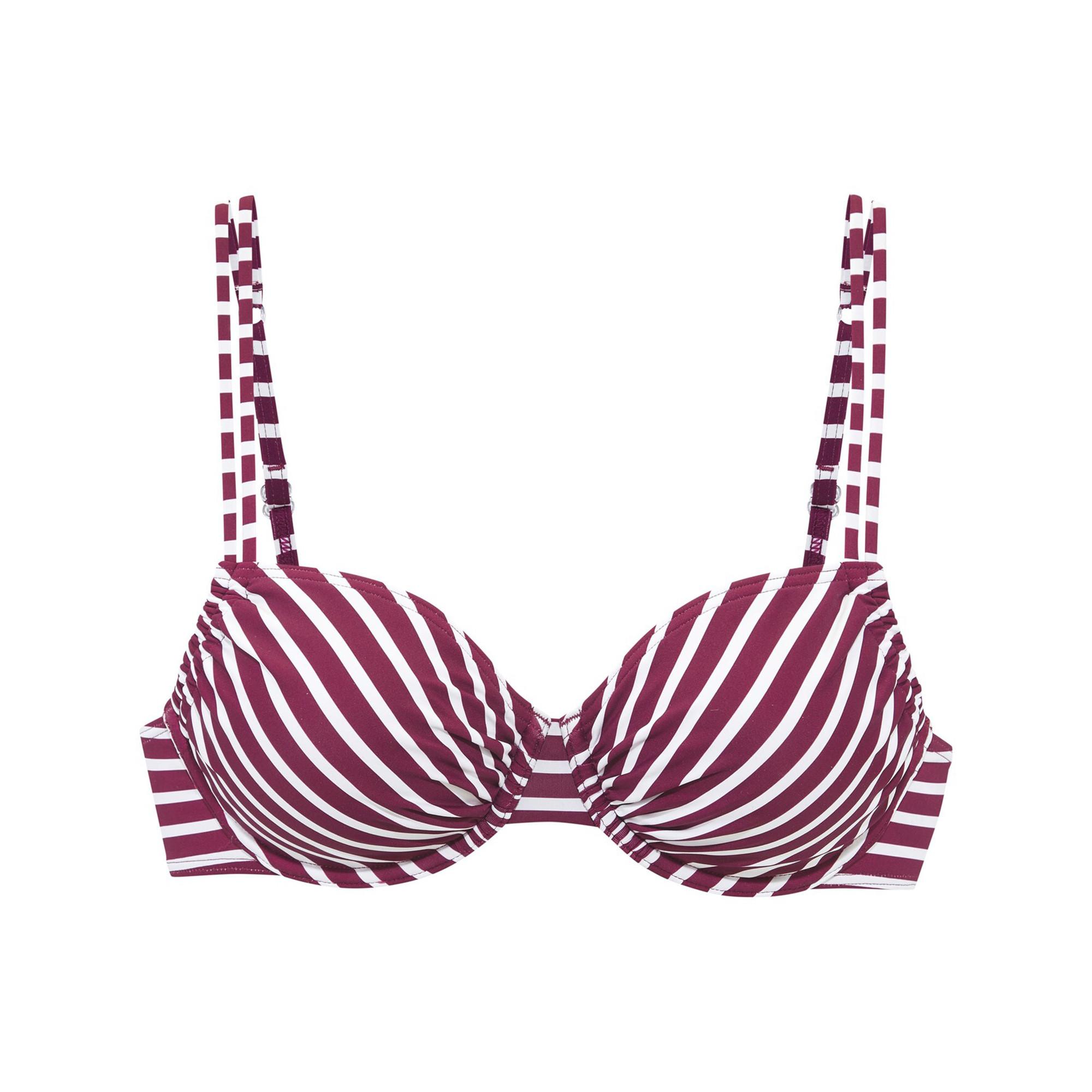 Dieses Bikini-Oberteil präsentiert sich in einem klassischen Design mit Bügeln, das eine bequeme und schmeichelhafte Passform bietet. Das gestreifte Muster verleiht einen zeitlosen und stilvollen Touch und macht es zu einer vielseitigen Wahl für verschiedene Bademode-Looks.