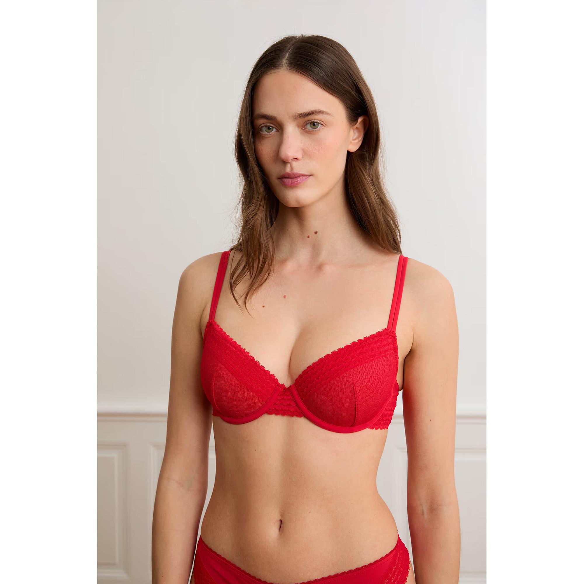 Dieser gepolsterte Push-Up Bügel-BH bietet sowohl Halt als auch eine schmeichelhafte Silhouette. Das Design verfügt über zarte Spitzendetails an den Cups und am Band, die einen Hauch von Eleganz verleihen. Die verstellbaren Träger sorgen für eine bequeme und individuelle Passform.