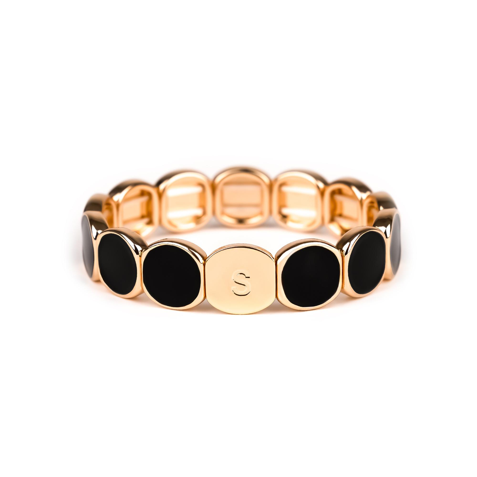 Der Colormind Maxi Noir Armreif von Simone à Bordeaux überzeugt mit einer kraftvollen, eleganten Ausstrahlung. Die grossen, rund gefassten Elemente in tiefem Schwarz bilden einen markanten Kontrast zum warm glänzenden Goldton und verleihen dem Armband eine moderne, grafische Präsenz. Dank des elastischen Bands trägt sich das Schmuckstück angenehm aussenluftig wie ein klassischer Reif und eignet sich perfekt sowohl für minimalistische Alltagslooks als auch für elegante Abendoutfits. Ein zeitloses Statement‑Piece, das jedem Stil Raffinesse verleiht.