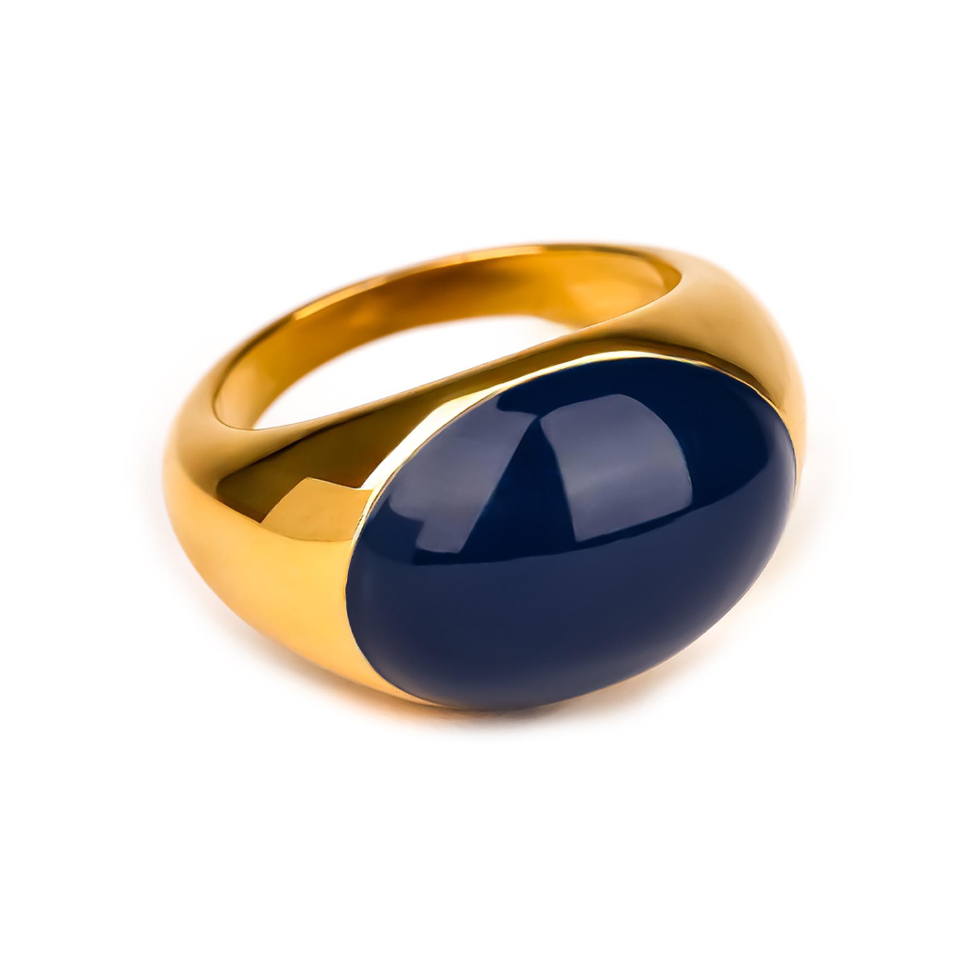 Die Bague Mon Secret Encre von Simone à Bordeaux besticht durch ihre klare, moderne Formensprache. Der quadratische Ringkopf mit sanft abgerundeten Kanten umfasst einen intensiv tintenblauen, glänzend emaillierten Einsatz, der in einem warm schimmernden goldfarbenen Rahmen gefasst ist. Die glatte, hochpolierte Oberfläche erzeugt einen eleganten Kontrast zwischen Farbe und Metall, wodurch der Ring sowohl kraftvoll als auch raffiniert wirkt.