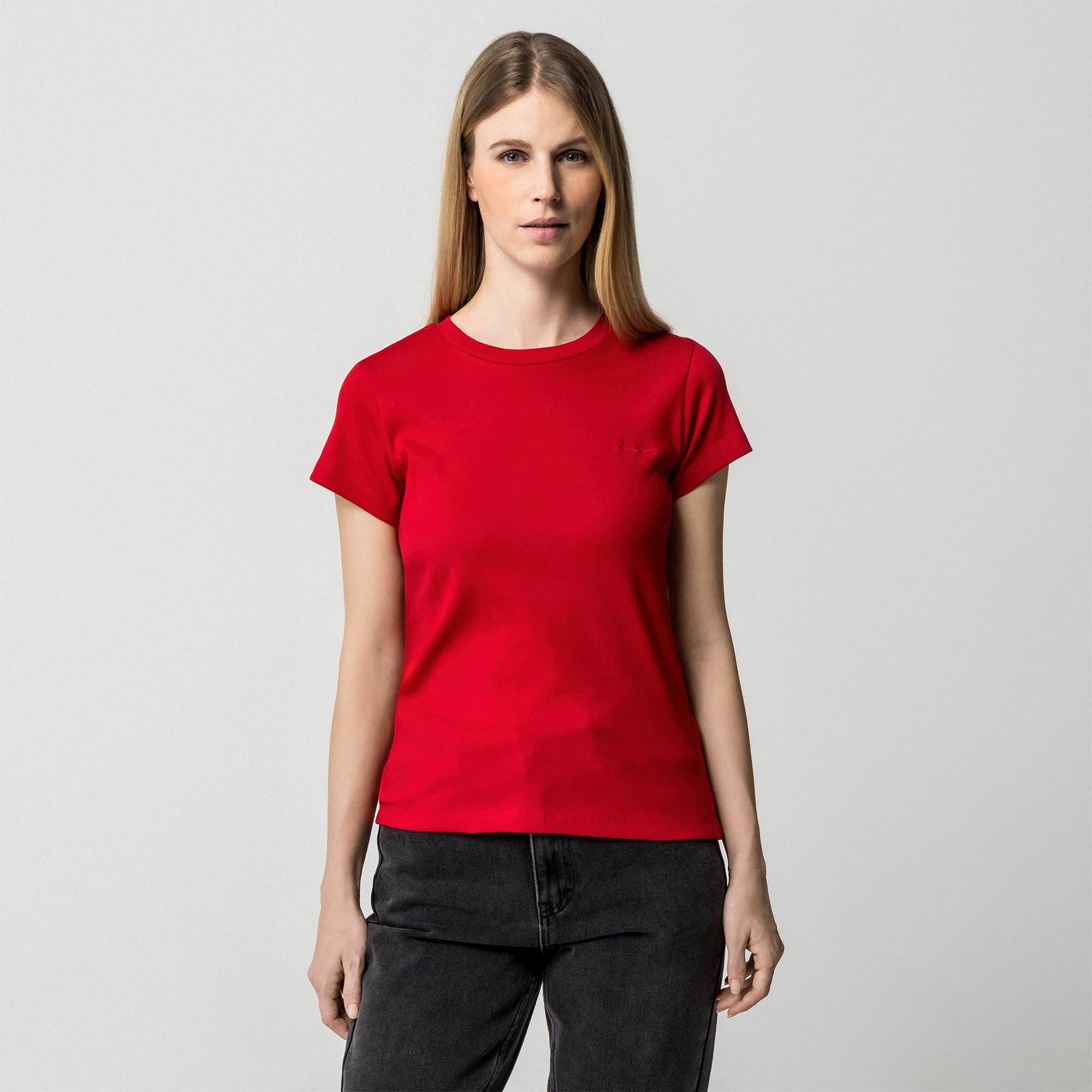 Dieses Kurzarmshirt ist aus Rippmaterial gefertigt und verfügt über einen Rundhalsausschnitt sowie ein dezentes Logo auf der Brust. Ein schlichtes Basic mit sportivem Charakter – ideal für vielseitige Alltagskombinationen.