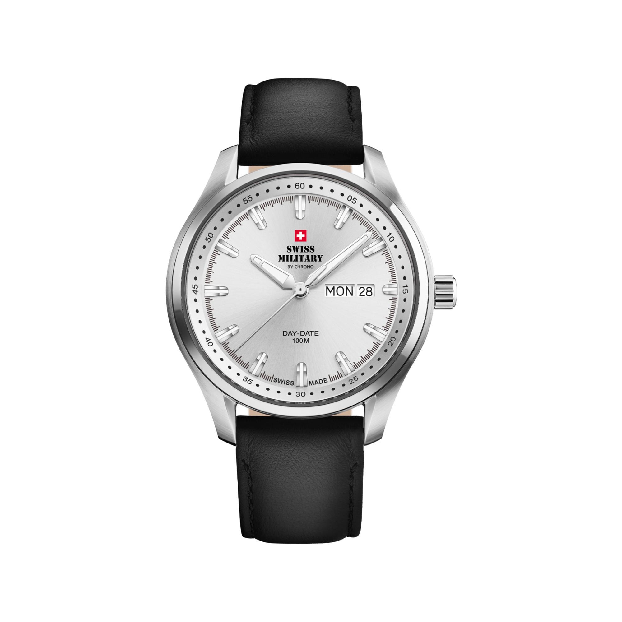 Die Swiss Military Classic Herrenuhr SM34116.05 besticht durch ihr silbernes Sonnenschliff‑Zifferblatt, das in Kombination mit dem polierten Edelstahlgehäuse eine moderne, zurückhaltende Raffinesse ausstrahlt. Leuchtzeiger und ‑indizes sorgen jederzeit für eine klare Ablesbarkeit, während die Tag‑/Datumfunktion Ihren Alltag zuverlässig strukturiert. Dank massivem Edelstahl und kratzfestem Saphirglas bleibt das elegante Finish auch bei täglichem Tragen erhalten, unterstützt durch 100 Meter Wasserdichtigkeit für ein aktives Leben. Angetrieben vom Schweizer Ronda‑517‑Quarzwerk überzeugt die Uhr mit präziser Zeitmessung, während das schwarze Lederarmband für Komfort und eine stilvoll klassische Note sorgt.