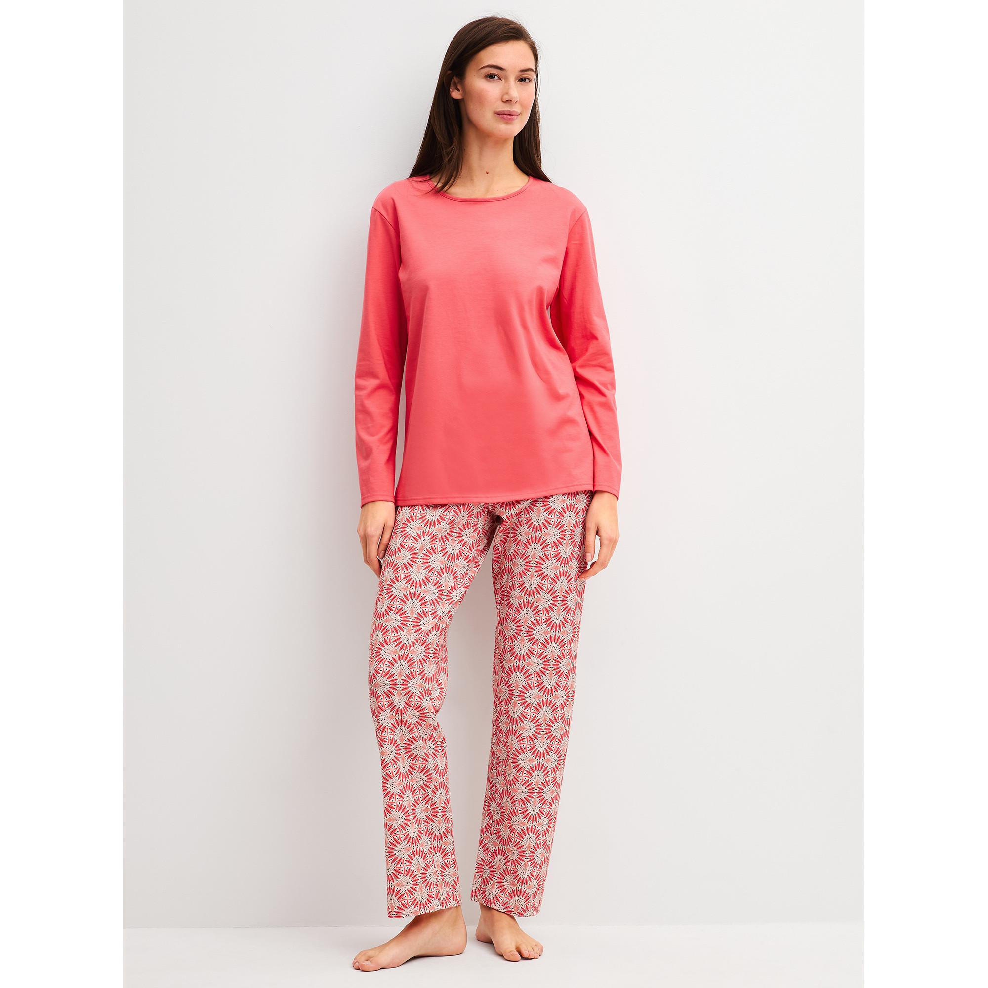 Dieses Pyjama-Set bietet Komfort und Stil für entspannte Abende und ruhige Nächte. Das langärmlige Oberteil ist für eine bequeme Passform konzipiert, während die Hose ein lebhaftes Muster aufweist, das der Loungewear einen charmanten Touch verleiht.