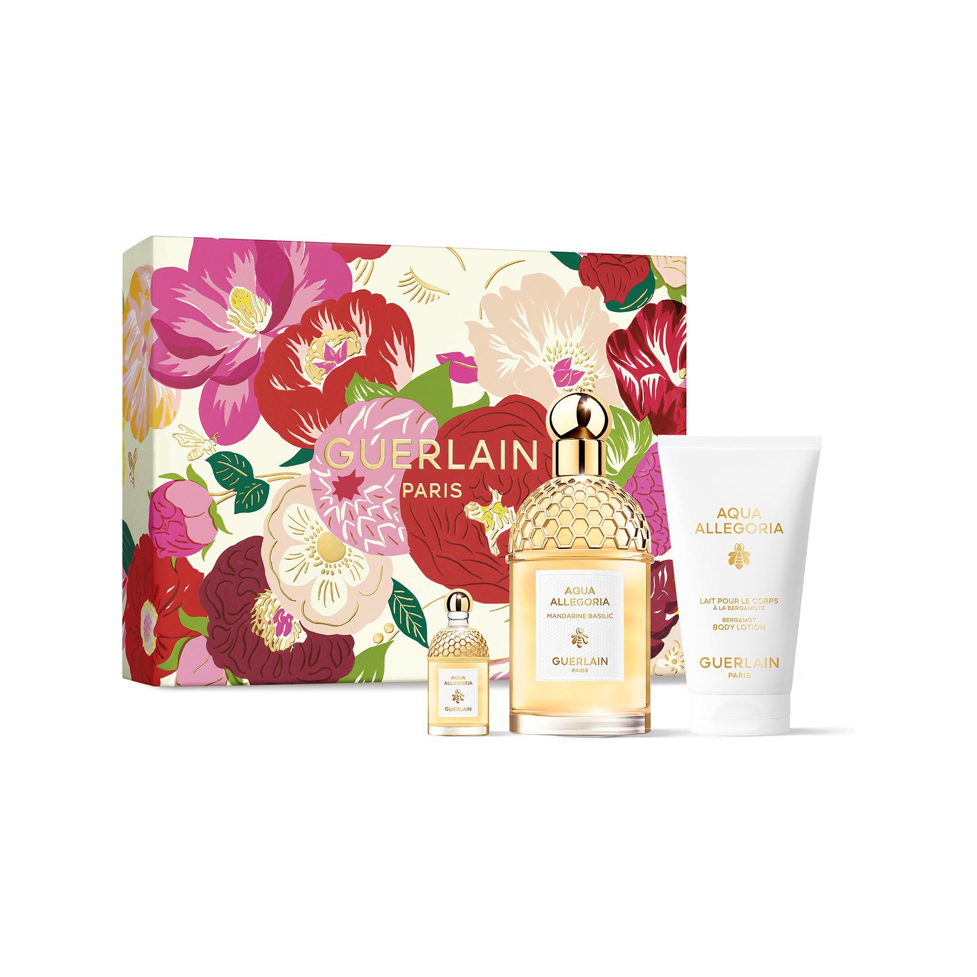 - Das Eau de Toilette Aqua Allegoria Mandarine Basilic (125 ml und eine Miniatur 7,5 ml): ein prickelnder, leuchtend-aromatischer Zitrusduft. Die aromatische Frische von Basilikum lässt das saftige und säuerliche Fruchtfleisch der Mandarine über sich hinauswachsen. Dann kommt die Energie von grünem Tee in Kombination mit holzigen Noten ins Spiel.