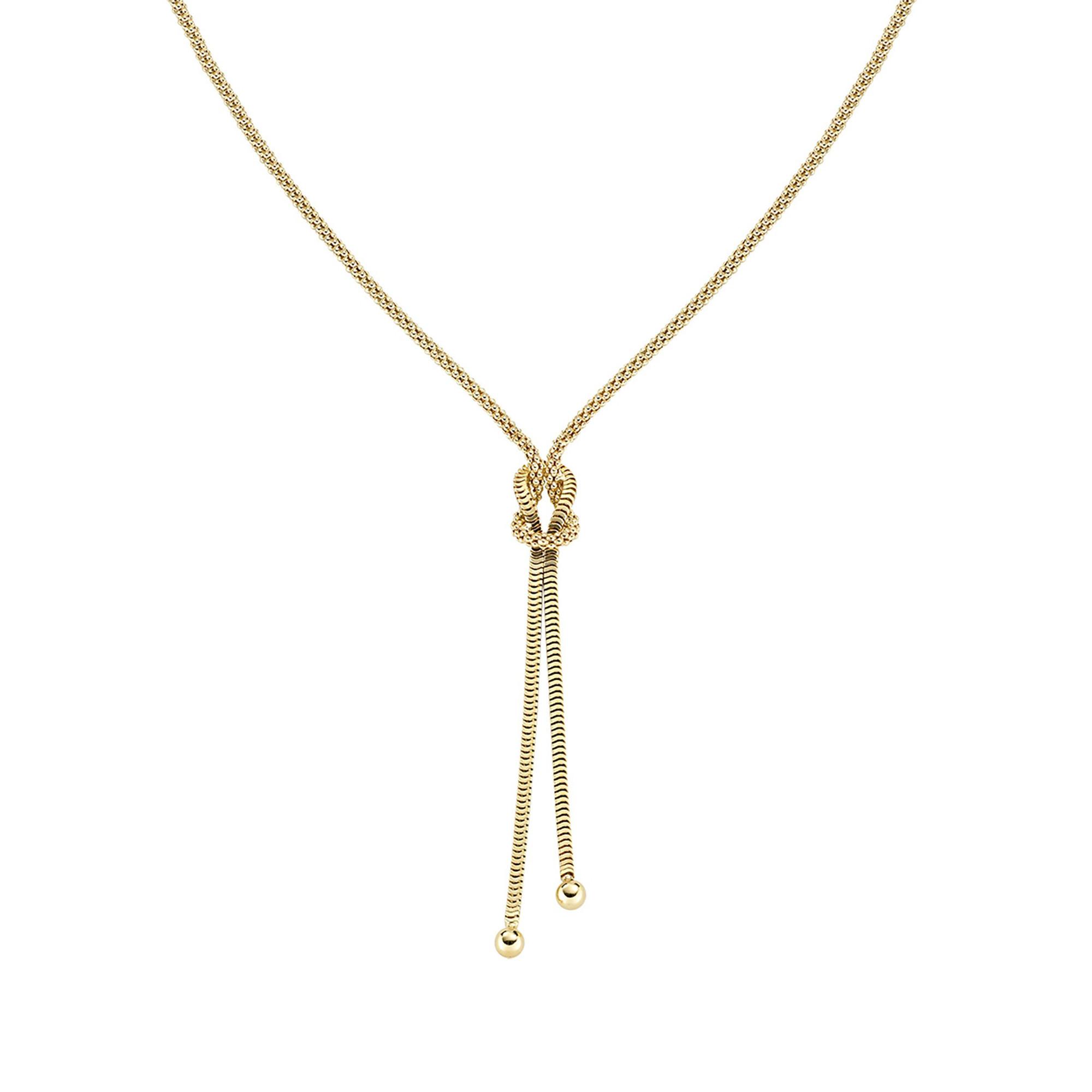 Diese Damenkette aus vergoldetem Sterling Silber überzeugt mit einem modernen Design aus zwei ineinandergreifenden Ketten, die einen eleganten Knoten formen. Der Love Knot steht symbolisch für ewige Liebe, Zuneigung und den Schutz bedeutsamer Verbindungen. Pur getragen wirkt die Kette stilvoll und zeitlos, kombiniert mit dem passenden Armband unterstreicht sie ihre emotionale Aussage. Die verstellbare Länge von 40 bis 45 cm sorgt für angenehmen Tragekomfort.