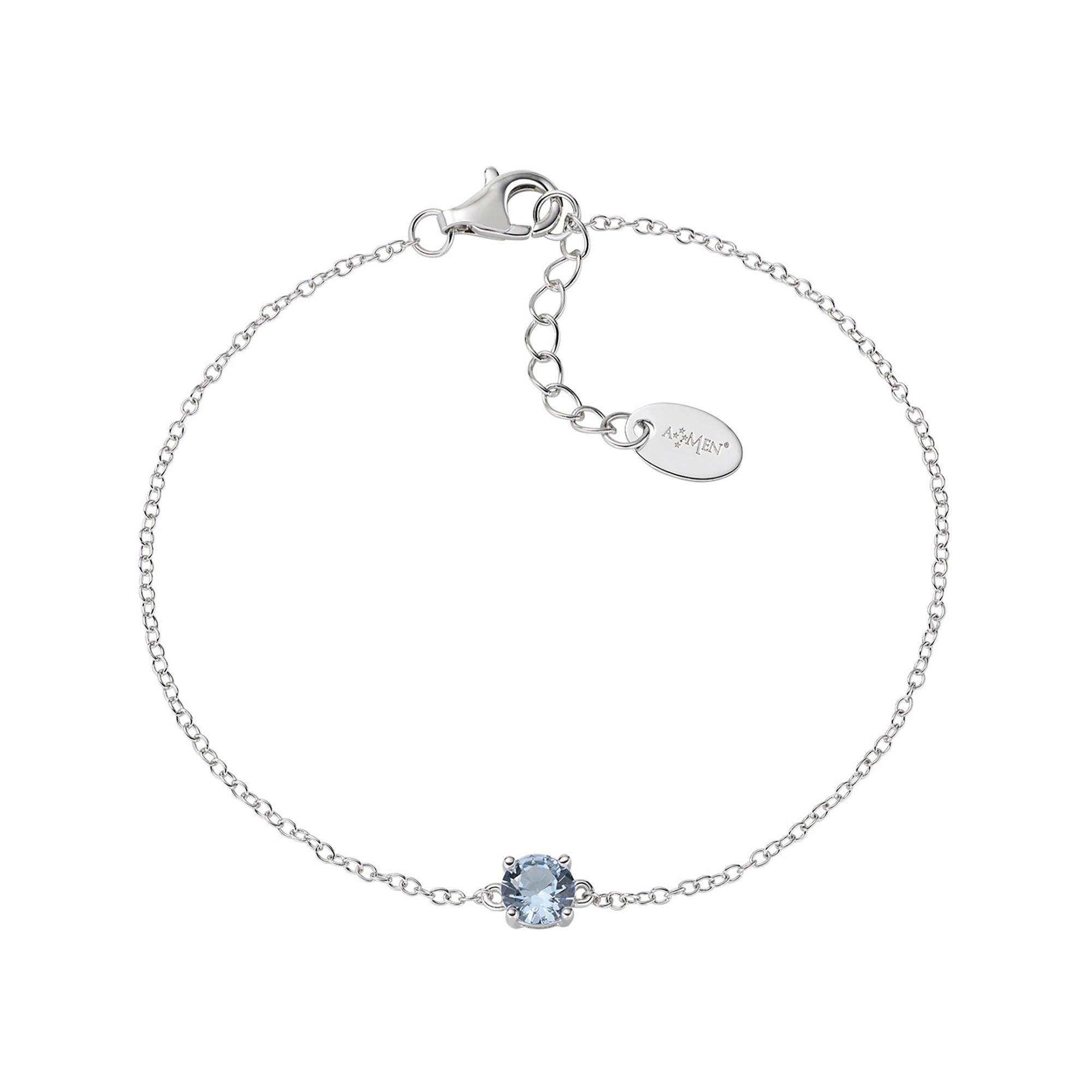 Dieses zarte Damenarmband aus rhodiniertem Sterling Silber überzeugt mit klarer Eleganz und feinem Glanz. Ein aquamarinfarbener Zirkonia mit 5 mm Durchmesser wird von weissen Zirkonia akzentuiert und reflektiert das Licht auf besonders harmonische Weise. Das puristische Design wirkt leicht und feminin und lässt sich solo oder im Layering vielseitig kombinieren. Dank der verstellbaren Länge von 16 bis 18,5 cm sitzt das Armband angenehm am Handgelenk.