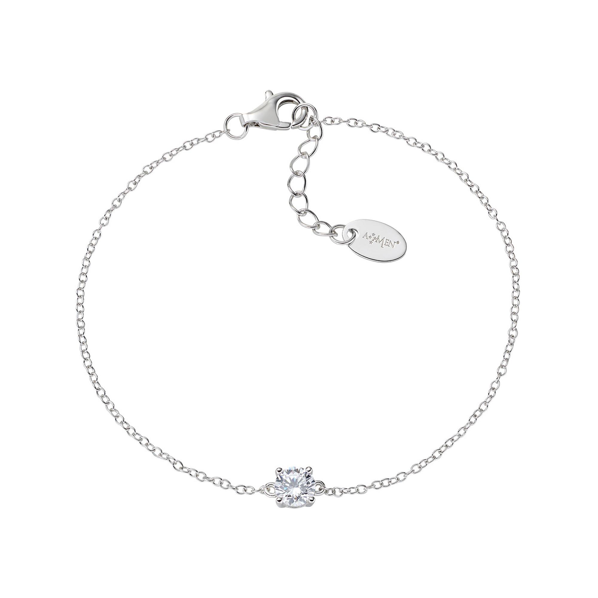 Dieses filigrane Damenarmband aus rhodiniertem Sterling Silber überzeugt mit purer Eleganz und feinem Lichtspiel. Ein weisser Zirkonia mit 5 mm Durchmesser wird von funkelnden weissen Zirkonia akzentuiert und verleiht dem Design eine klare, harmonische Ausstrahlung. Dank seines reduzierten, bon-ton Stils lässt sich das Armband solo oder im Layering vielseitig kombinieren. Die verstellbare Länge von 16 bis 18,5 cm sorgt für einen angenehmen Sitz am Handgelenk.