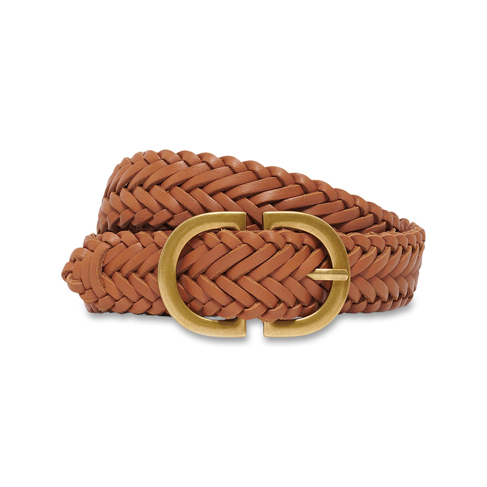 Dieser geflochtene Gürtel verfügt über eine markante Monogramm-Schnalle, die jedem Outfit einen Hauch von Raffinesse verleiht. Das aufwendige geflochtene Design bietet eine einzigartige Textur und eine bequeme Passform, was ihn zu einem vielseitigen Accessoire für verschiedene Stile macht.