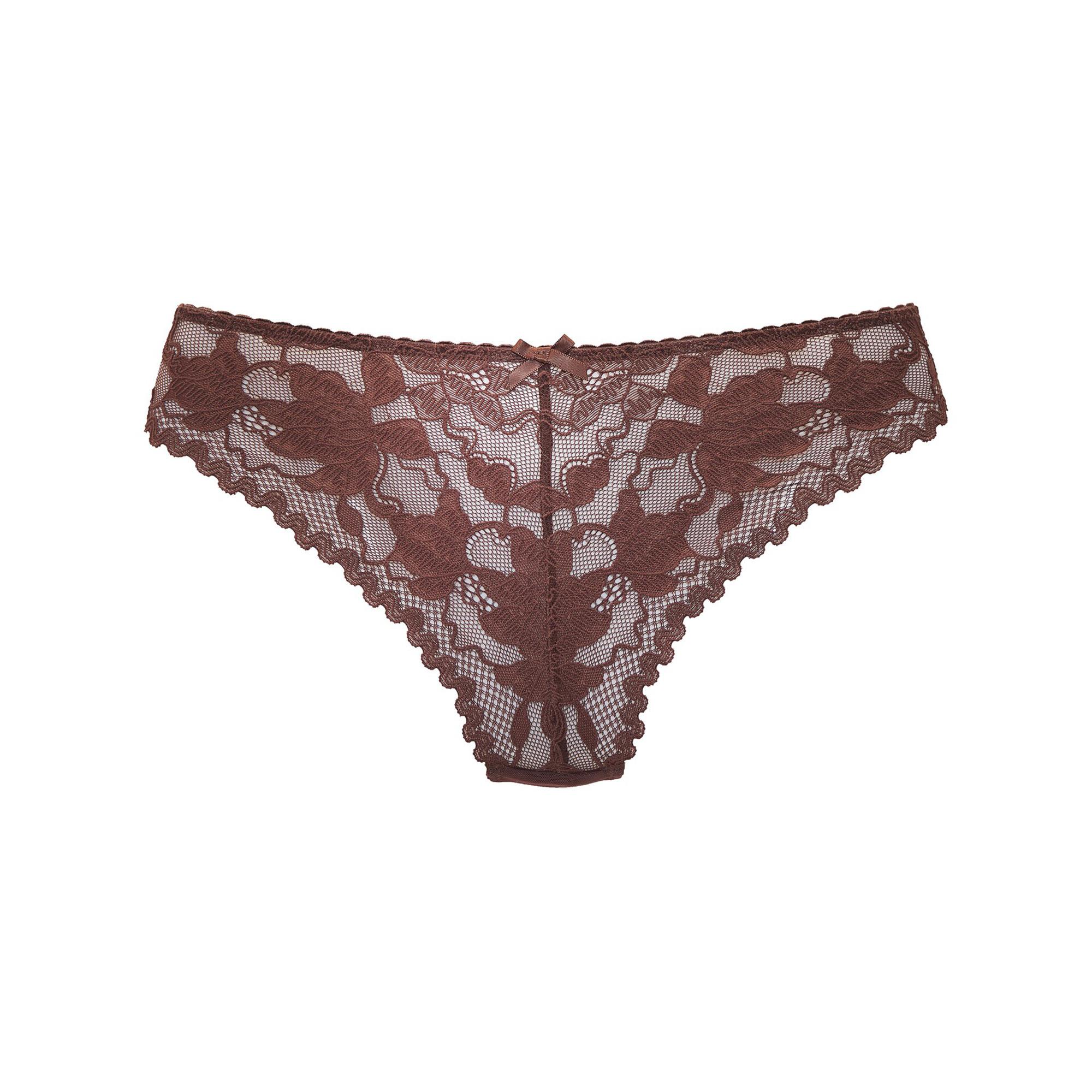 Dieser String ist aus zarter Spitze gefertigt und weist ein aufwendiges Blumenmuster auf, das einen Hauch von Eleganz verleiht. Das Design wird durch eine kleine Schleife vorne abgerundet, die den femininen Reiz verstärkt. Die gewellten Kanten sorgen für einen weichen und bequemen Sitz.