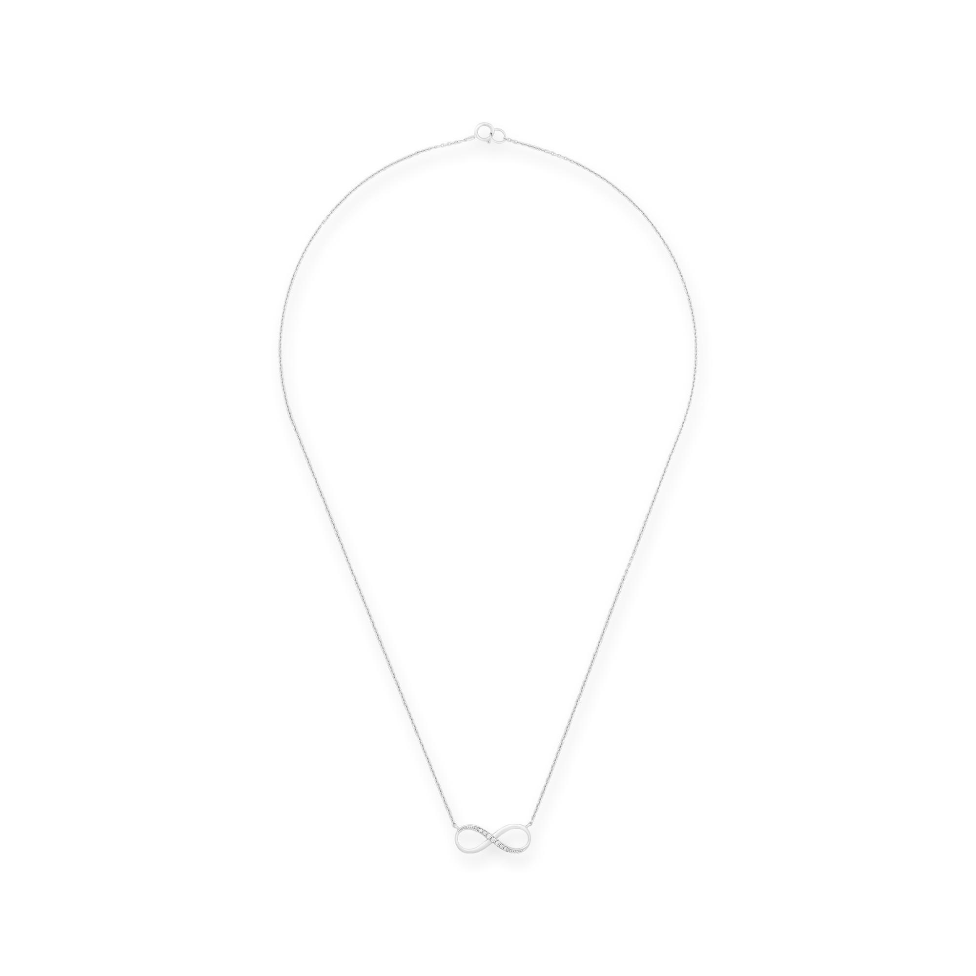 Diese Halskette von L'Atelier Gold 18 Karat by Manor besteht aus einer zarten Kette mit einem filigranen, von Diamanten besetzten Eternity-Symbol. Hergestellt ist sie aus 18-karätigem Gold. Sie lässt sich elegant per Federringverschluss schliessen.