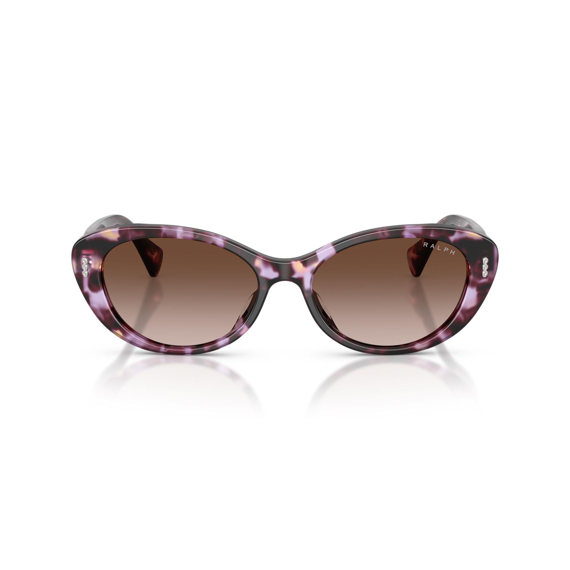 Diese Ralph Cat Eye Sonnenbrille zeichnet sich durch ein stilvolles Design mit Vollrandfassung und Verlaufsgläsern aus. Die Bügel sind mit einem dekorativen Element verziert, das dem Gesamtbild einen Hauch von Eleganz verleiht. Der Markenname ist dezent in die Bügel integriert.