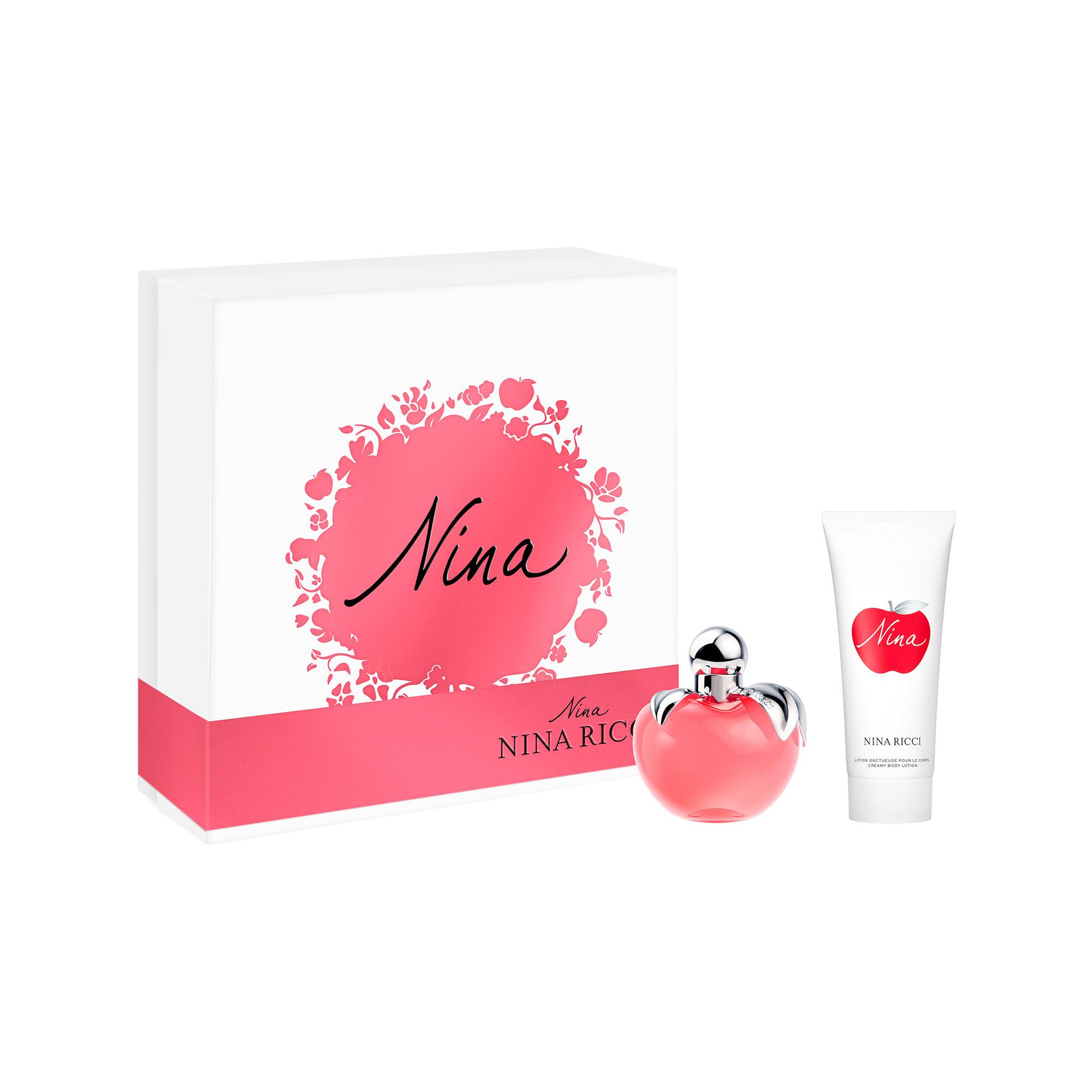 Schenken Sie ihr den strahlenden Charme von Nina, dem legendären blumig-fruchtigen Parfum von Nina Ricci. Das Duo wird in einem eleganten weissen Geschenkset präsentiert und von dem berühmten roten Apfel und zarten Blumenmotiven geschmückt. Es enthält Nina Eau de Toilette 50 und 75 ml seiner dezent duftenden Körpermilch. Das Geschenkset Nina Eau de Toilette wird von einem strahlenden Zitrus-Akkord und frischen Blumen getragen und ist das ideale Geschenk, um die Frau zu feiern, die Ihre Welt erhellt.