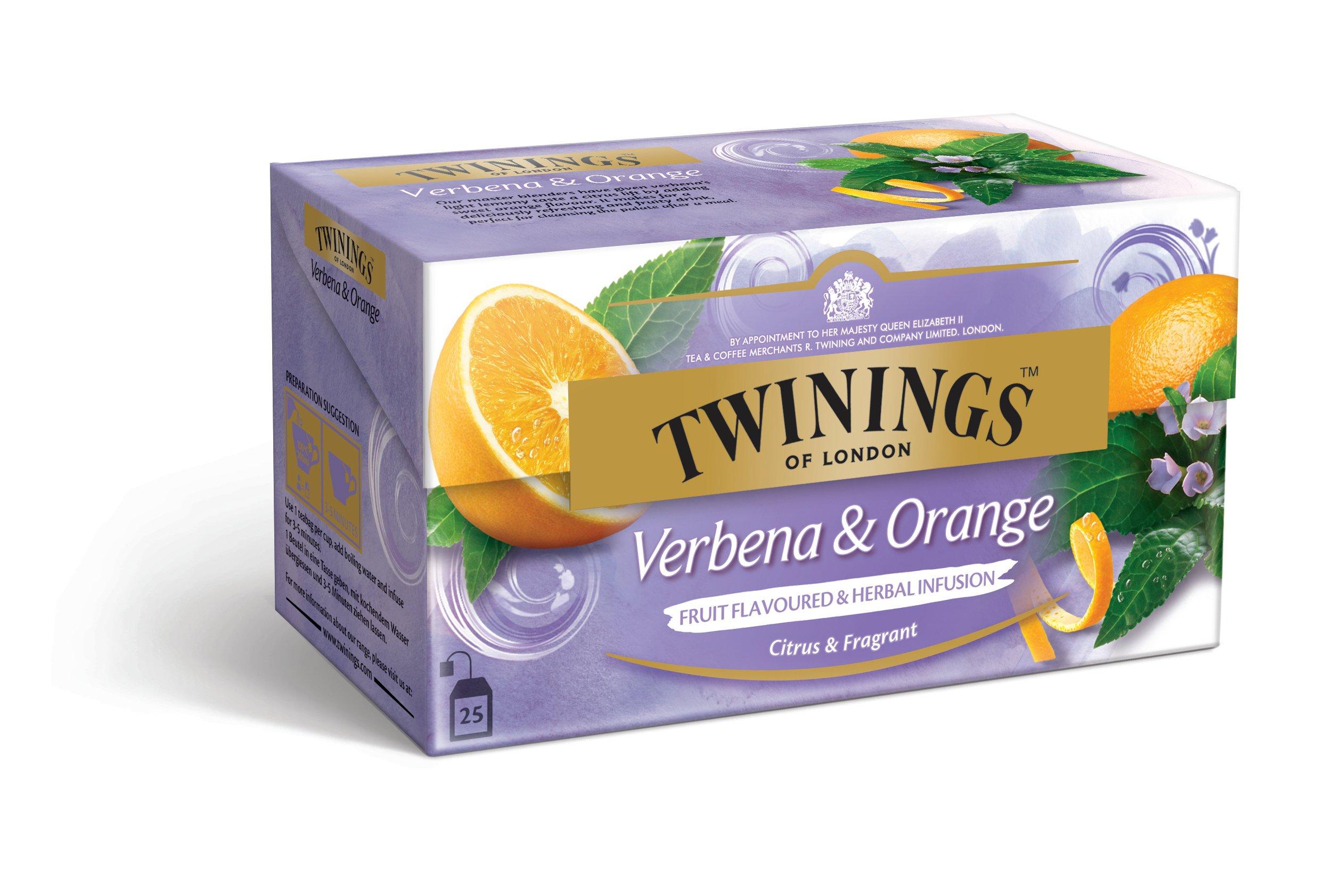 Die natürliche Zitronennote des Eisenkrautes in einer raffinierten Kombination mit dem mildsüssen Aroma sonnengereifter Orangen zeichnet den Twinings Verbena & Orange Tee besonders aus.