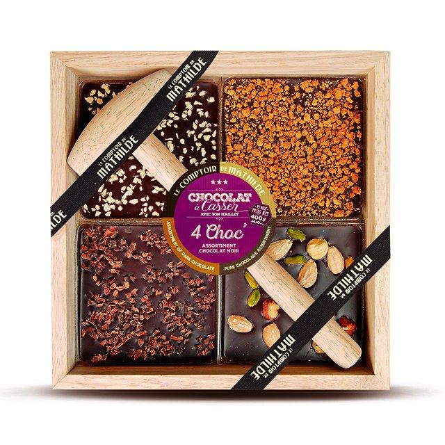 XMAS Vier verschiedene Schokoladensorten mit Holzhammer