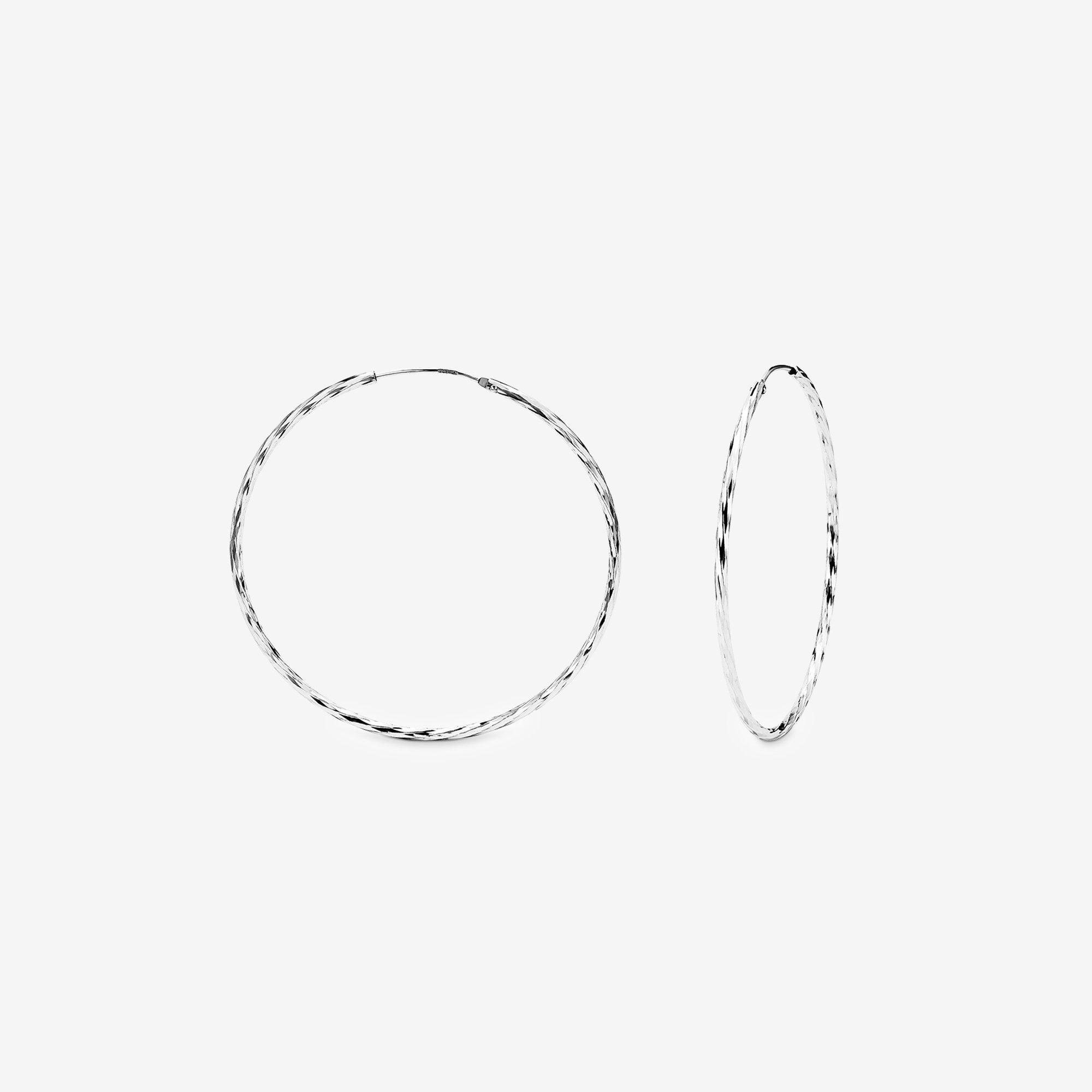 Filigrane Creolen der Marke Amor mit geschwungenen Rillen entlang der Oberfläche.