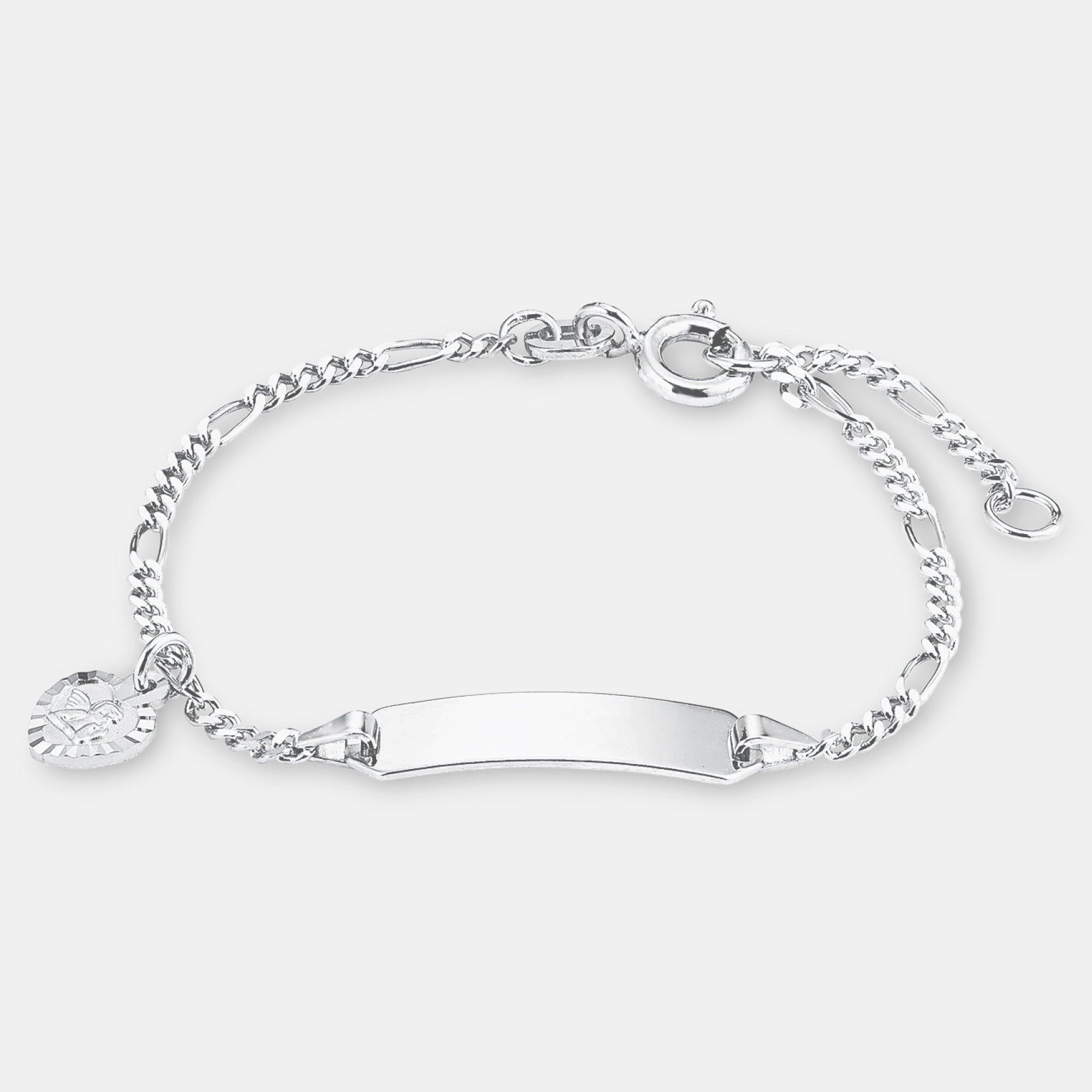 - Gravierbares, längenverstellbares Kinder Ident-Armband (12+2 cm) mit allseits wachendem Schutzengel in Herzform