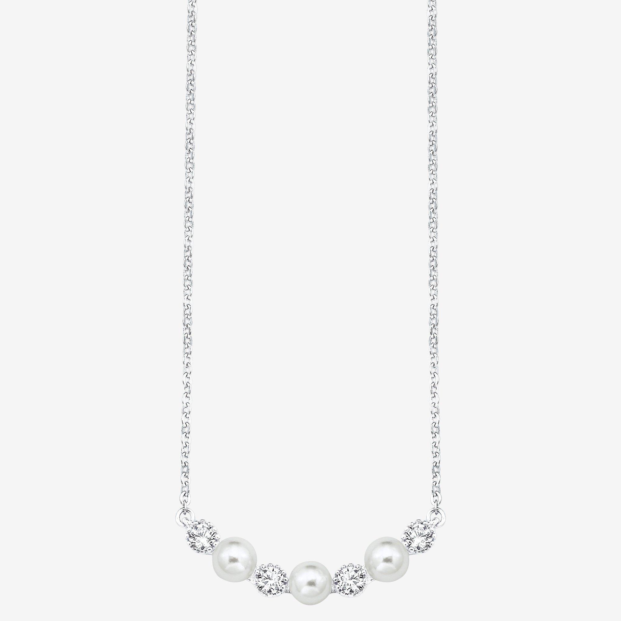 Zart schimmernde Perlen und funkelnde Zirkonia-Steine, die sich spielerisch aneinanderreihen, bilden das Herzstück dieser aus feinstem Silber gefertigten Halskette der Marke amor.