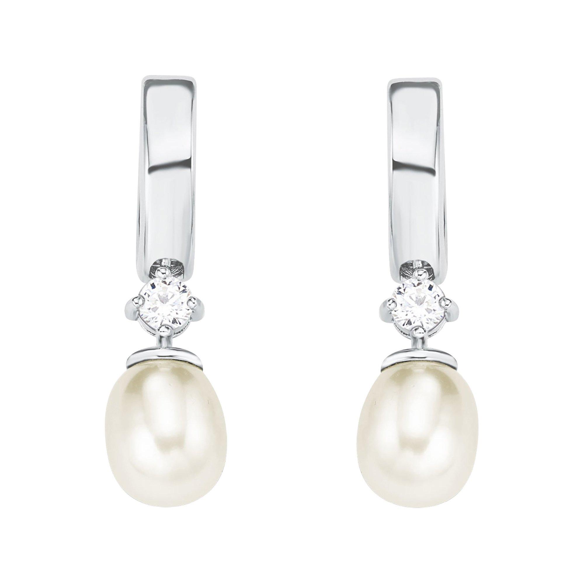 Ohrschmuck Creolen der Marke amor aus echtem Silber mit Zirkonia- und Perlen-Dekor.