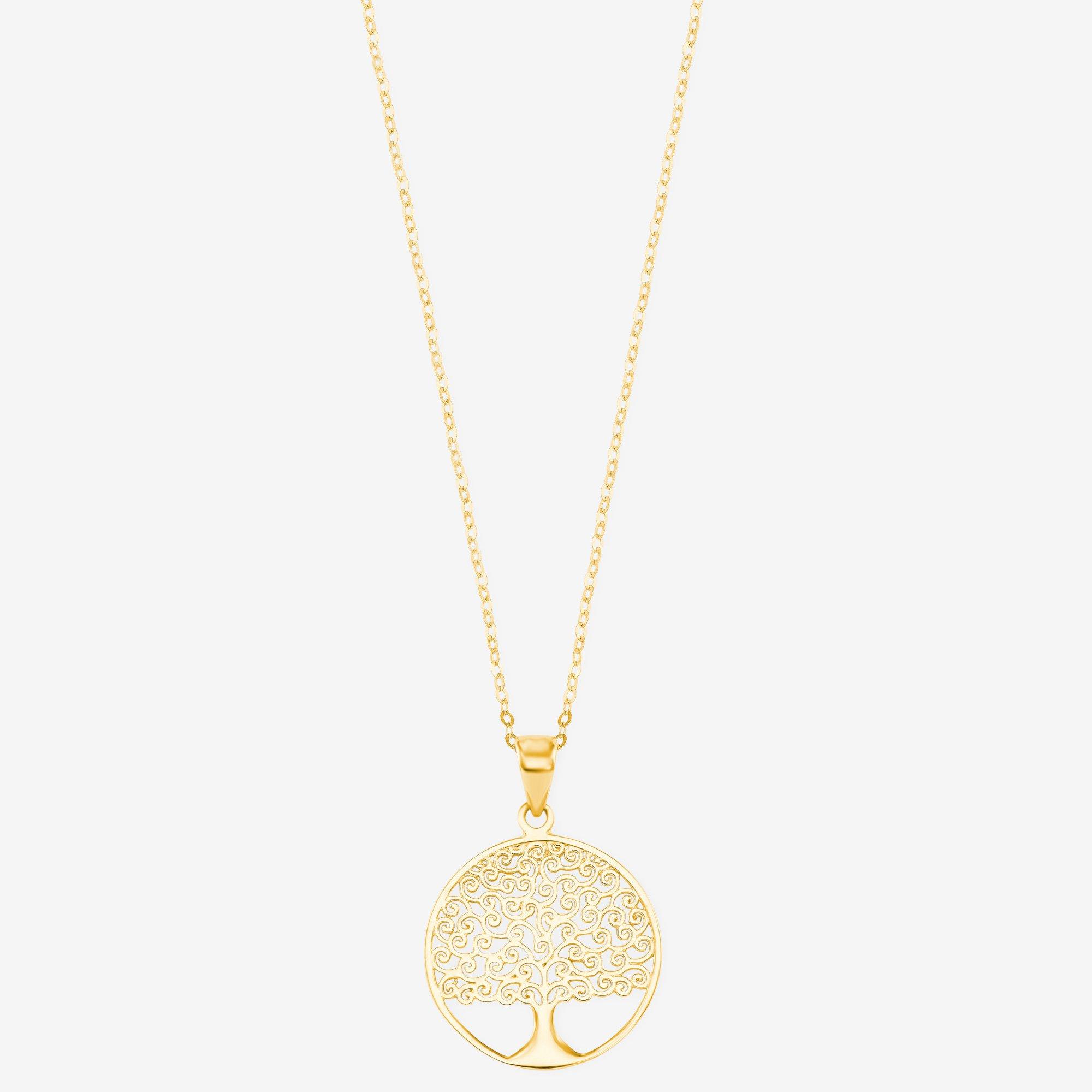 Ein Lebensbaum ist ein Zeichen der Hoffnung und eignet sich wunderbar als Glücksbringer und Kraftspender. Diese 45 cm lange Ankerkette mit Lebensbaum-Anhänger besteht aus glänzendem 375er Gelbgold. Die Anhängermasse betragen ca. 23 mm x 17 mm. Als Verschluss dient ein praktischer Federring.