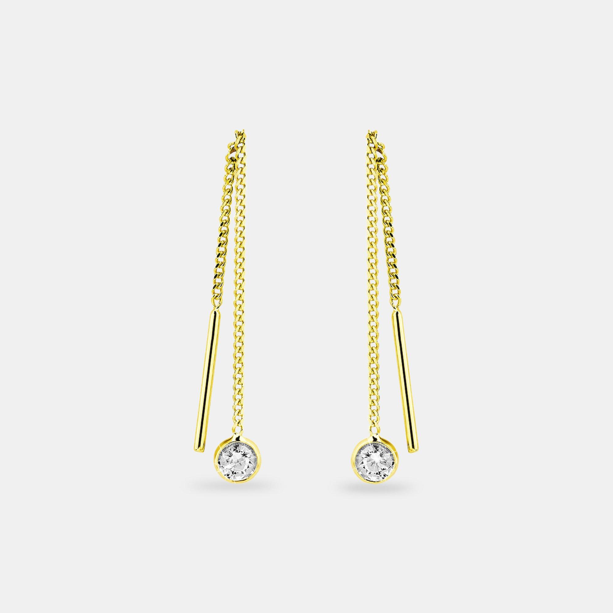 Mittellange Damen Durchzieher von amor aus hochwertigem 375 Gold/9 ct. Die ca. 5,5 cm langen Hänger strahlen dank weisser Zirkonia.