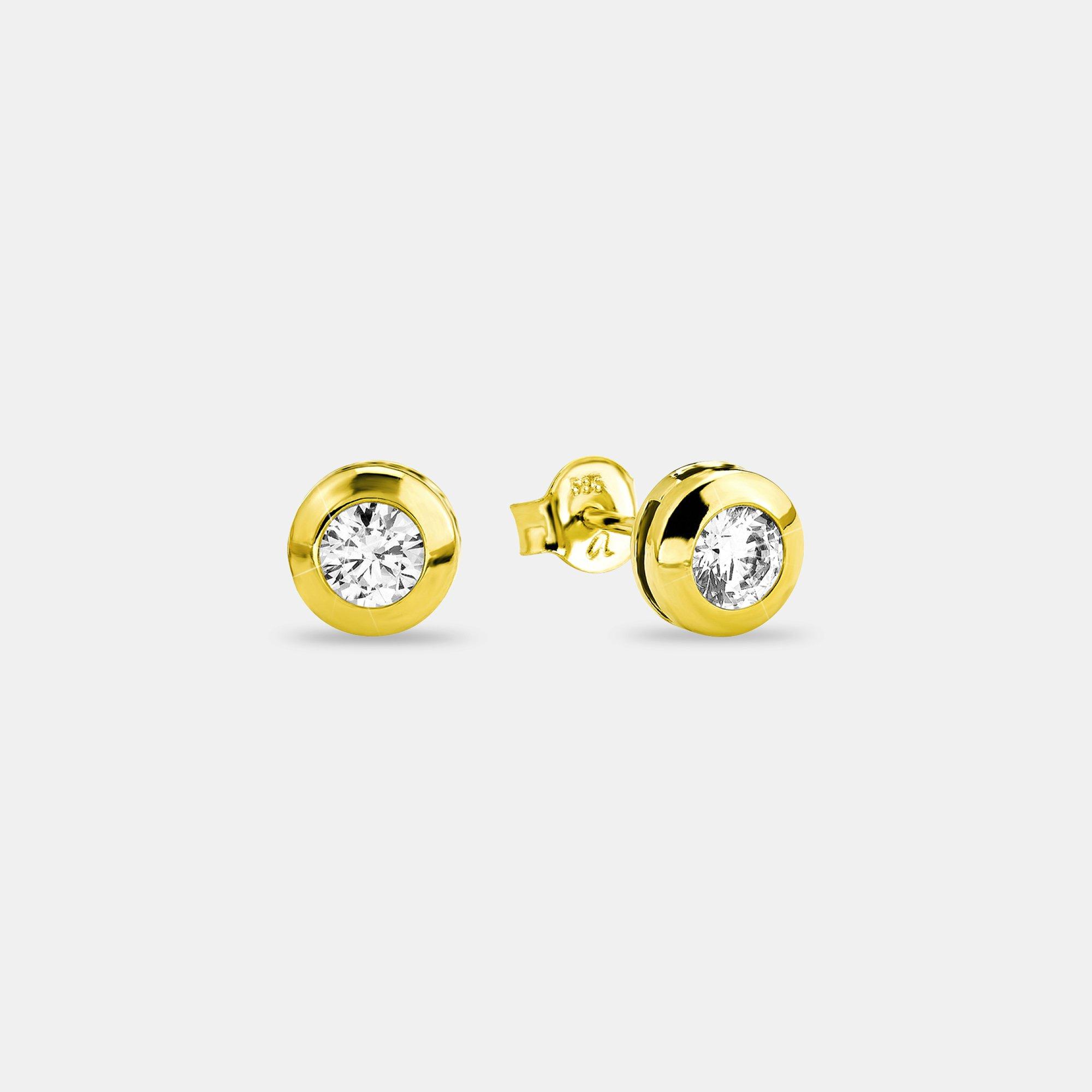 - Schöne Ohrstecker aus hochwertigem 585er Gelbgold mit funkelnden Zirkonia (synth.) veredelt