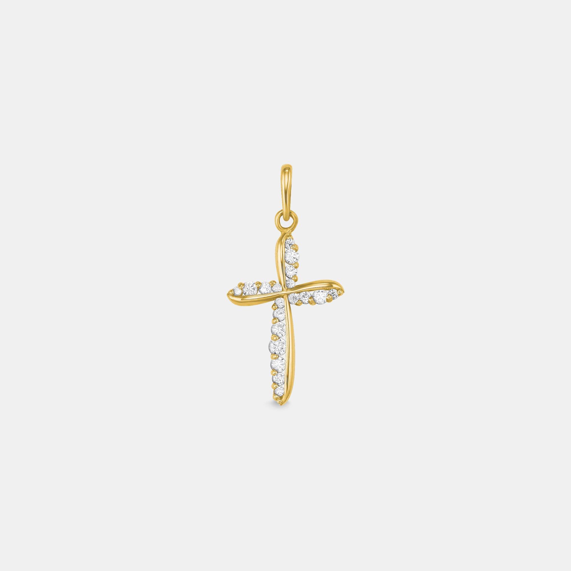 Glänzender Kreuz-Anhänger der Marke amor Echtschmuck aus hochwertigem Gelbgold (585/14 ct) verziert mit funkelnden Zirkonia (synth.) in reinem Weiss.