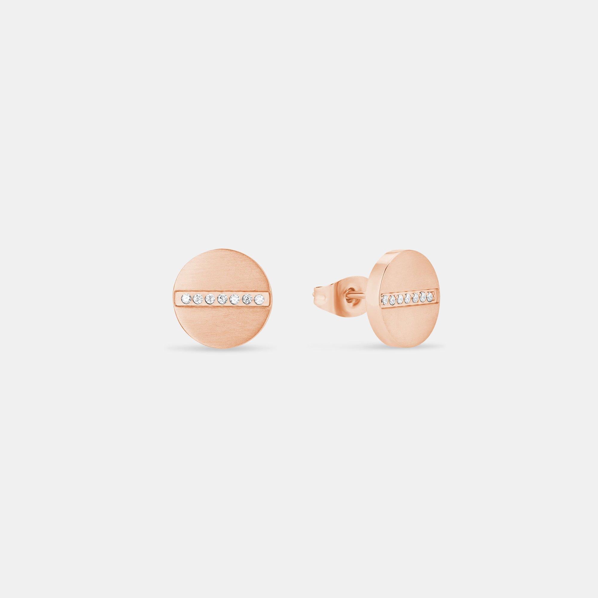Runde Ohrstecker mit einem Durchmesser von ca. 10 mm und 14 fein geschliffene Zirkonia (synth.) in reinem Weiss geben bei diesem Ohrsteckern den Ton an! Diese Ohrringe von s.Oliver sind aus robustem Edelstahl gefertigt und zudem mit einer hochwertigen Ionenplattierung in IP Rose veredelt, wodurch dieses Schmuckstück in einem warmen Roségold-Ton erstrahlt und zudem besonders kratzresistent ist. Dank praktischem Stecker lassen sich die Ohrringe besonders leicht und sicher schliessen.