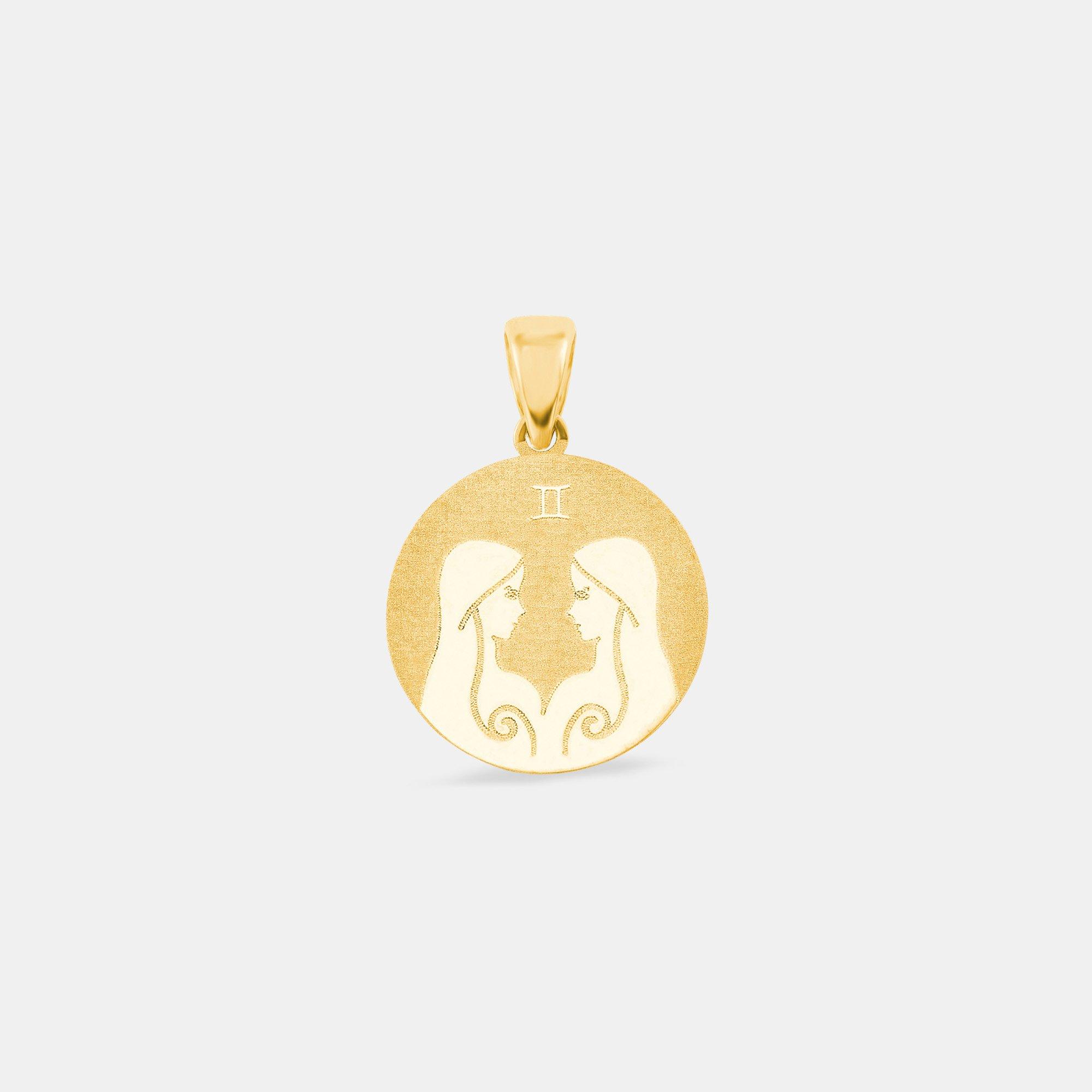 - Runde Sternzeichen-Plakette aus teilmattiertem 375er Gelbgold gefertigt - Motiv: Zwillinge (21. Mai - 21. Juni)