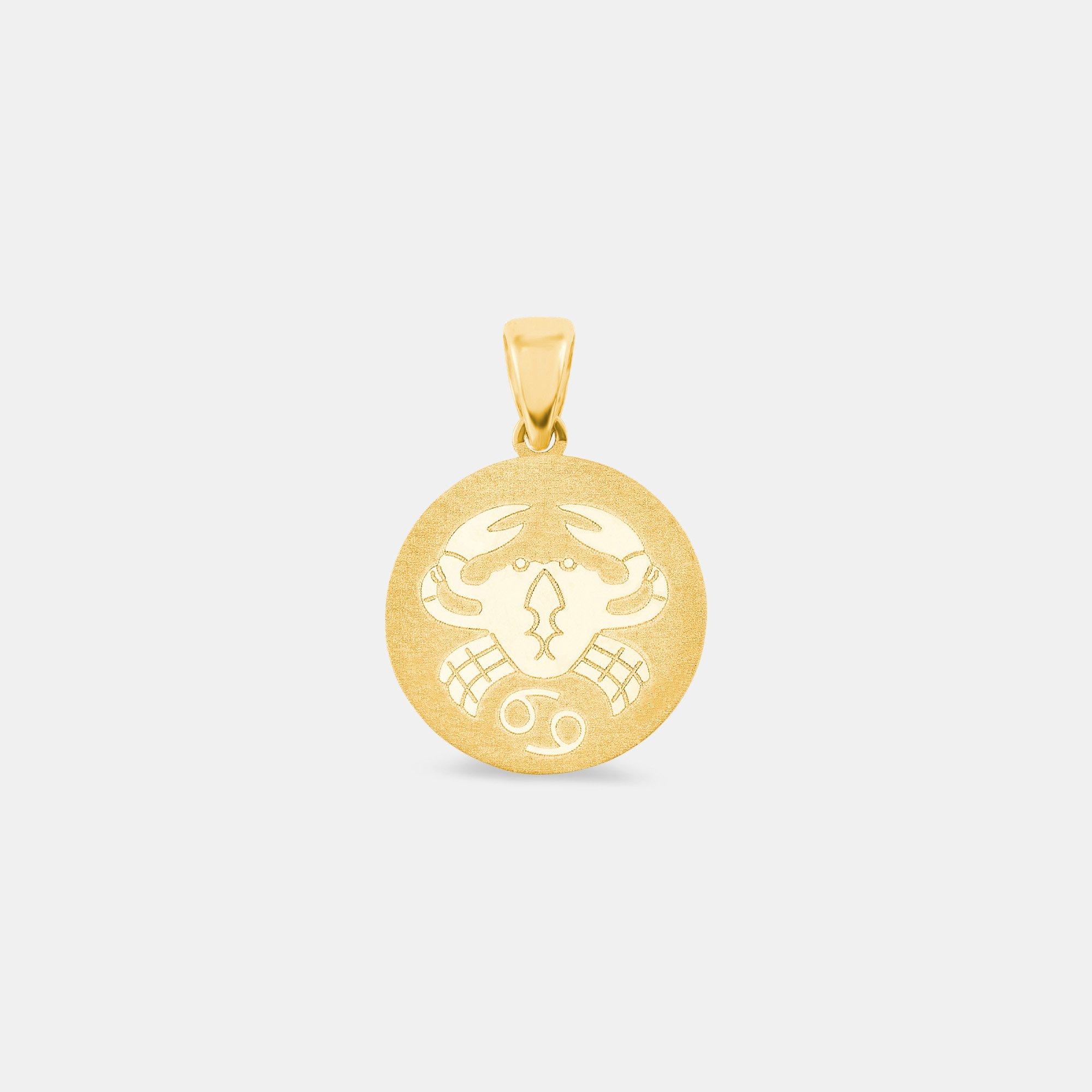 - Runder Sternzeichen-Anhänger aus teilmattiertem 375er Gelbgold gefertigt - Motiv: Krebs (22. Juni - 22. Juli)