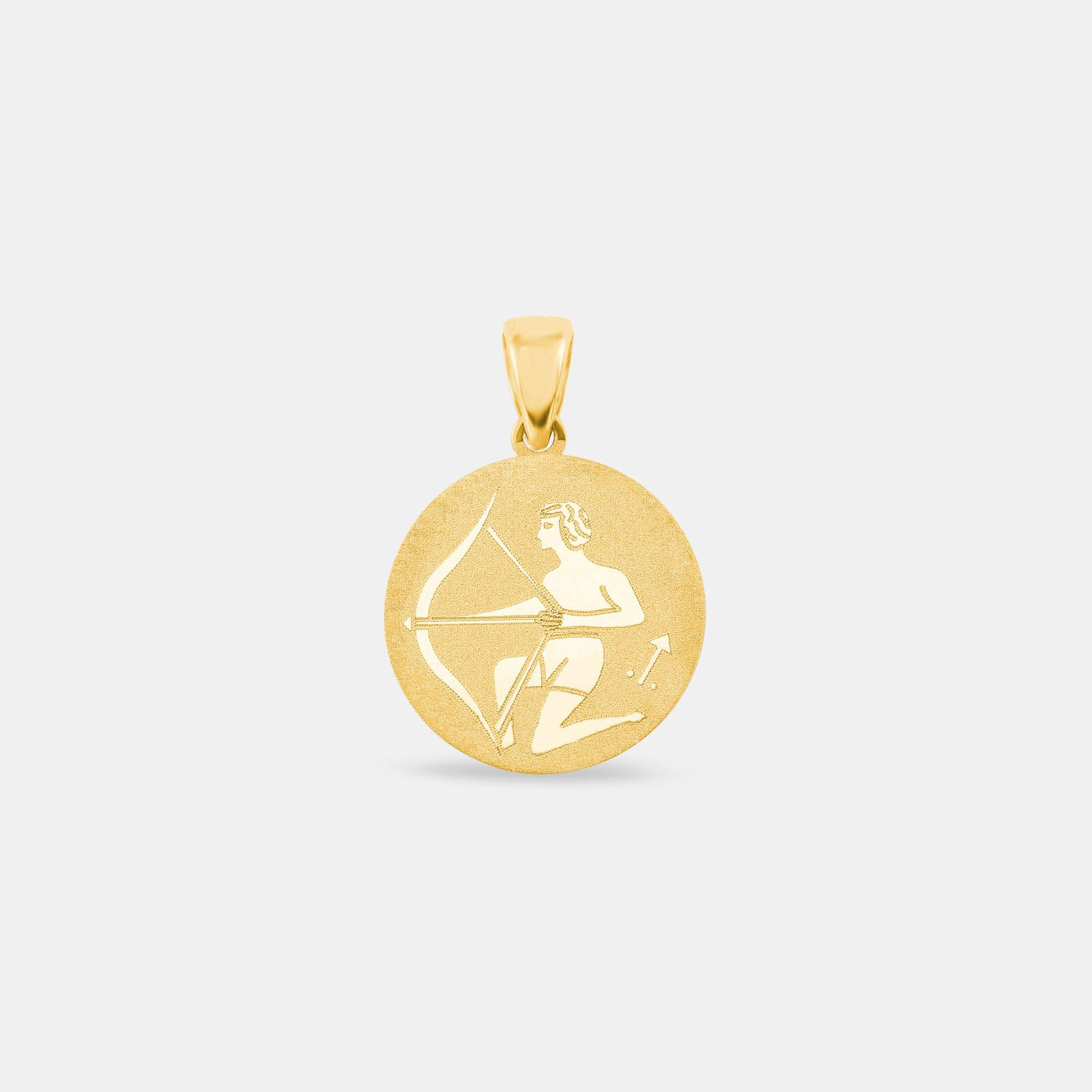 - Runder Sternzeichen-Anhänger aus teilmattiertem 375er Gelbgold gefertigt - Motiv: Schütze (23. November - 21. Dezember)