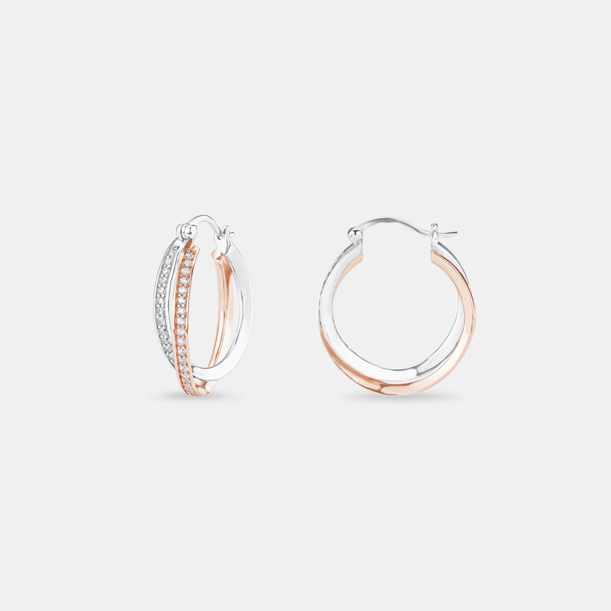 Creolen aus 925er Sterling Silber mit partieller hochwertiger Rosévergoldung von der Marke amor. Weisse funkelnde Zirkonia (synth.) strahlen auf den Ohrsteckern und eine partielle Schutzschicht aus Rhodium schützt das Schmuckstück.