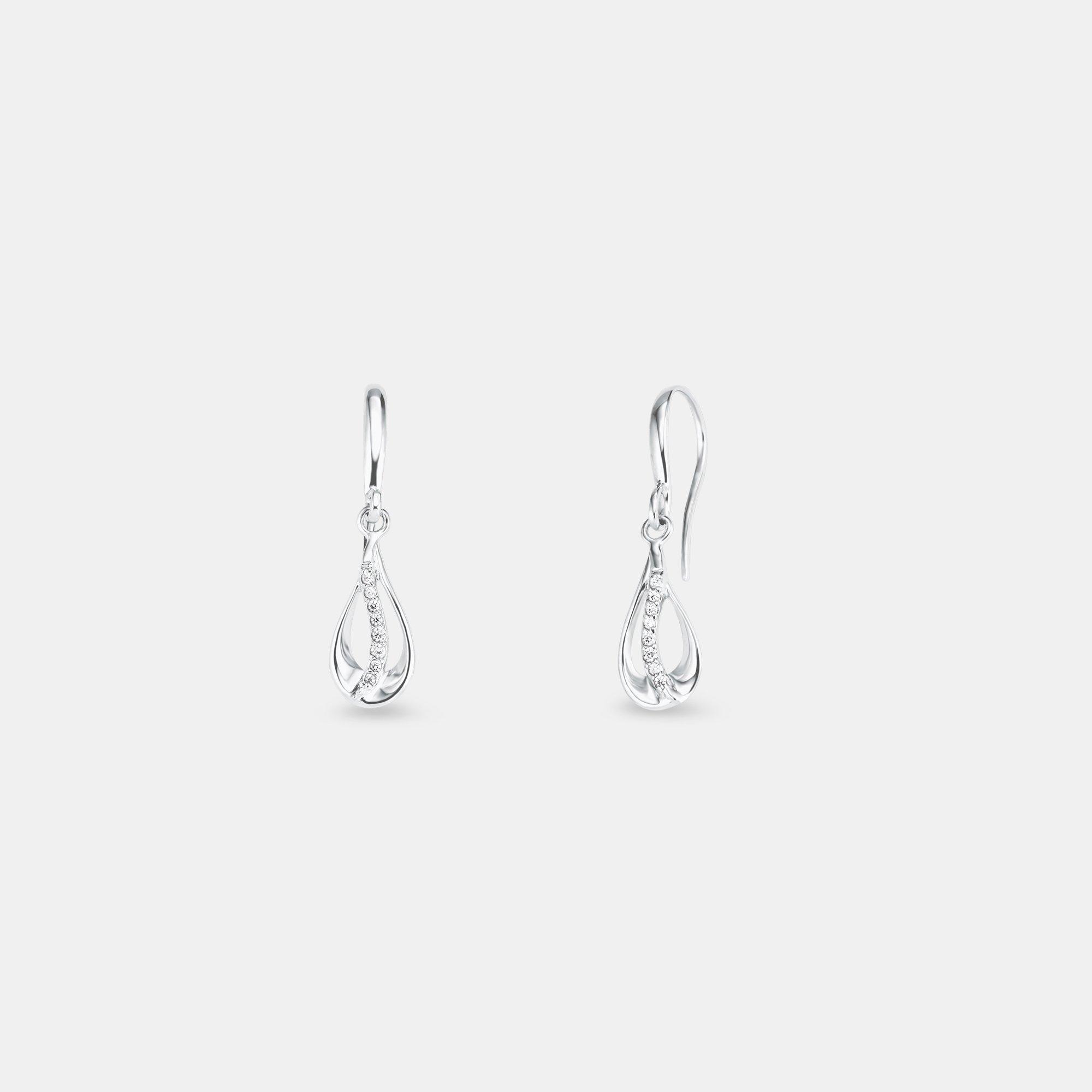 Die schlichten Ohrhänger überzeugen mit der strahlenden Eleganz. Weisse Zirkonia zieren das Schmuckstück und setzen dezente Highlights. Eine Schutzschicht aus Rhodium schützt das Schmuckstück vor dem Anlaufen und garantiert langen Glanz.