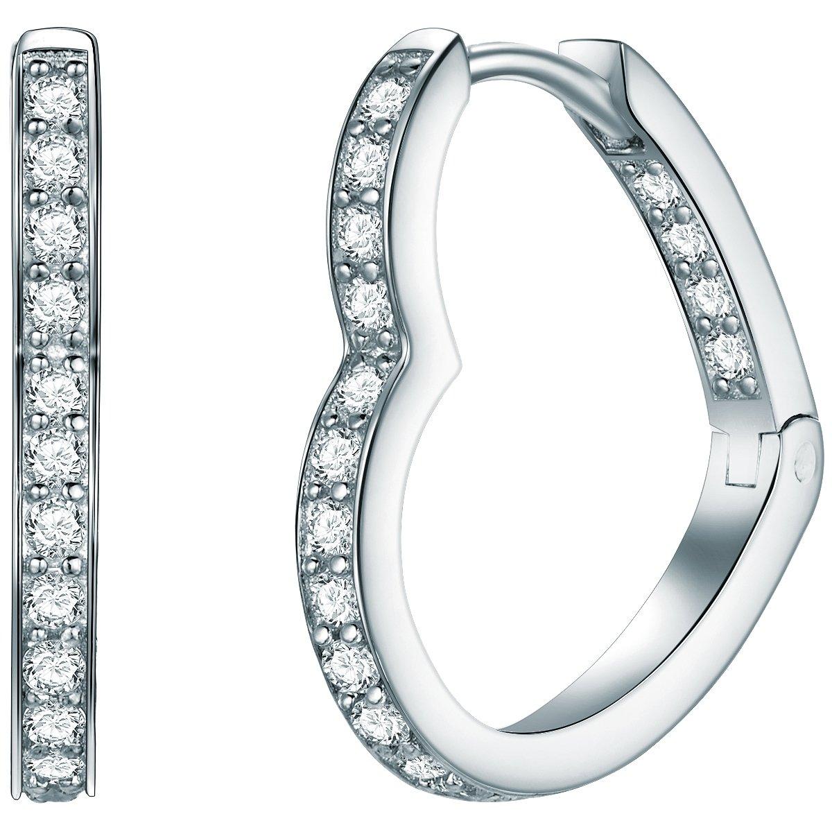 Mit diesen außergewöhnlichen Ohrcreolen ist der italienischen Fashionista-Marke Rafaela Donata ein besonders edler Coup gelungen. Von vorn sehen die Schmuckstücke aus feinstem 925er Sterlingsilber wie typische Creolen aus, doch von der Seite aus gesehen beschreiben sie eine wundervolle Herzform. Diese ist im vorderen Teil jeweils mit einer Reihe von funkelnden Zirkonias geschmückt und auch auf der Innenseite des hinteren Teils wurden Kristalle angebracht, um ihren Glamour-Faktor zu erhöhen. Außerdem wurden raffinierte Klappscharniere in diese Schätze integriert, um das Anlegen möglichst einfach und zeitsparend zu gestalten.