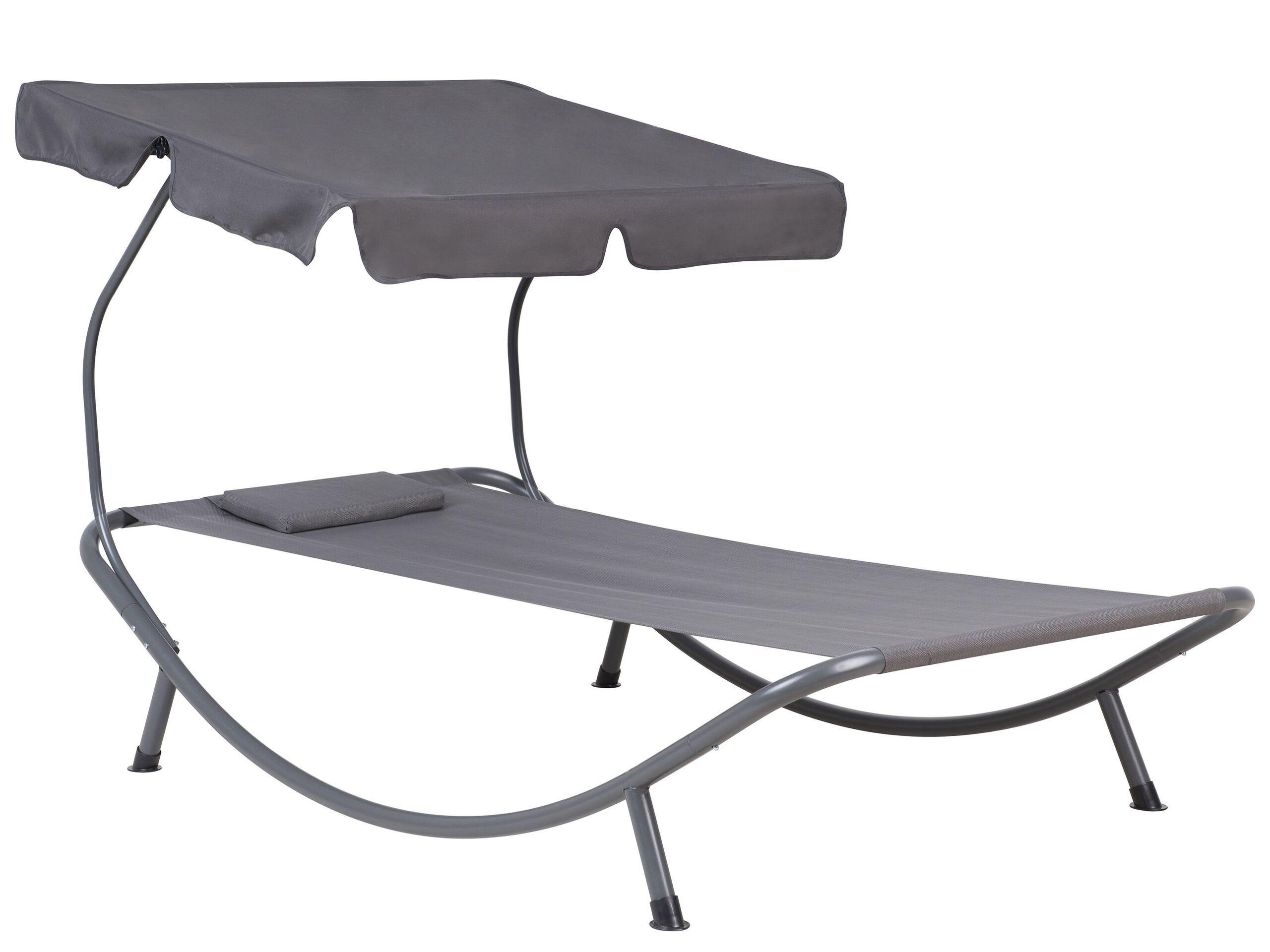 Luxuriöse Gartenliege mit Sonnendach für Freizeitspass im Garten. Das moderne Design besteht aus einem elegant geschwungenen, robusten Rahmen aus grauem, pulverbeschichtetem Stahl mit vier stabilen Füssen, die für sicheren Stand sorgen. Die komfortable Liegefläche ist aus strapazierfähigem, witterungsunempfindlichem Mesh in der Farbe Grau gefertigt. Das Highlight dieser Relaxliege ist das integrierte Sonnendach aus grauem Polyester, welches willkommenen Schatten spendet und Ihnen das Aufstellen eines separaten Sonnenschirms erspart. Der Bezug des verstellbaren Sonnendachs ist abnehmbar und kann bei 30°C gewaschen werden.
