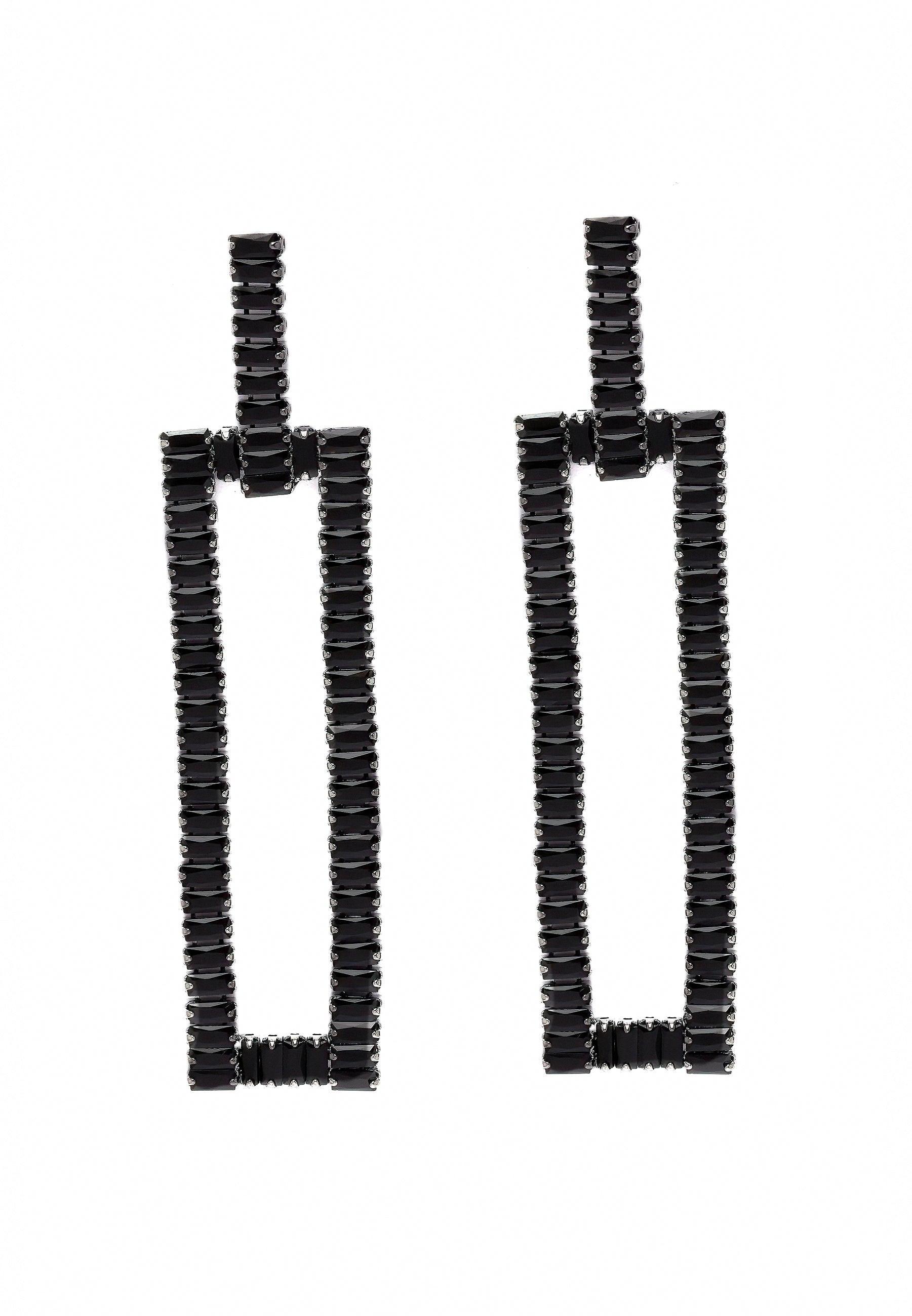 Die Diva Perky Long Dangle Ohrringe aus der Diva Kollektion bestechen durch ihr langes, schlankes Design, das die Beine optisch streckt. Die Ohrringe sind mit Zirkonia-Steinen besetzt. Der rechteckige Korpus mit seiner schlichten Innenseite unterstreicht die moderne und minimalistische Ästhetik. Schwarze Steine symbolisieren oft Eleganz und Raffinesse. Kombinieren Sie diese Ohrringe mit einem eleganten Cocktailkleid oder einem Abendkleid. Tragen Sie Ihr Haar hochgesteckt, um die langen Ohrringe und ihr markantes Design optimal zur Geltung zu bringen. Größe: 1,8 cm x 7,7 cm | Beschichtung: Rhodiumplattiert | Verschluss: Stecker und Rückteil