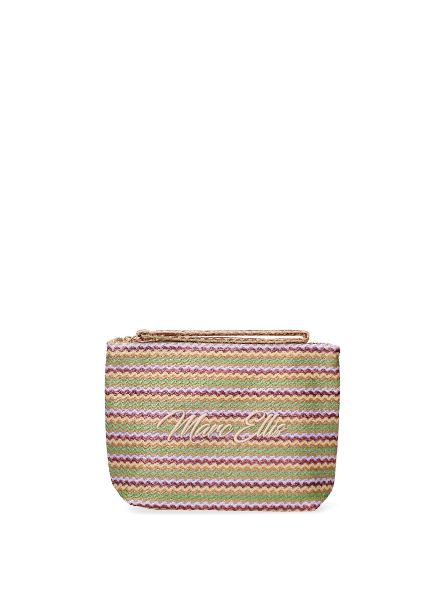 Diese Handtasche präsentiert sich mit einem lebhaften wellenförmigen Streifenmuster und ist somit ein stilvolles Accessoire für verschiedene Anlässe. Das Design zeigt das Markenlogo prominent auf der Vorderseite, was einen Hauch von Raffinesse verleiht.